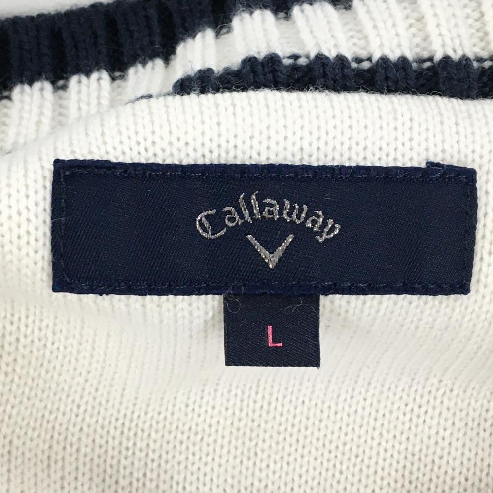 【美品】キャロウェイ ニットベスト 白×ネイビー ケーブル編み ウール混 Vネック レディース L ゴルフウェア Callaway