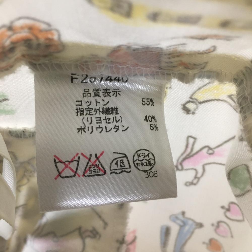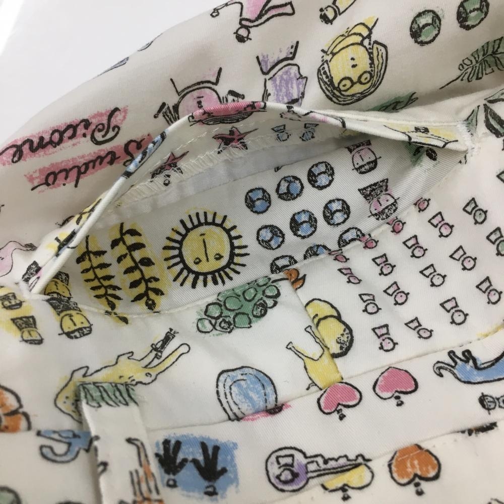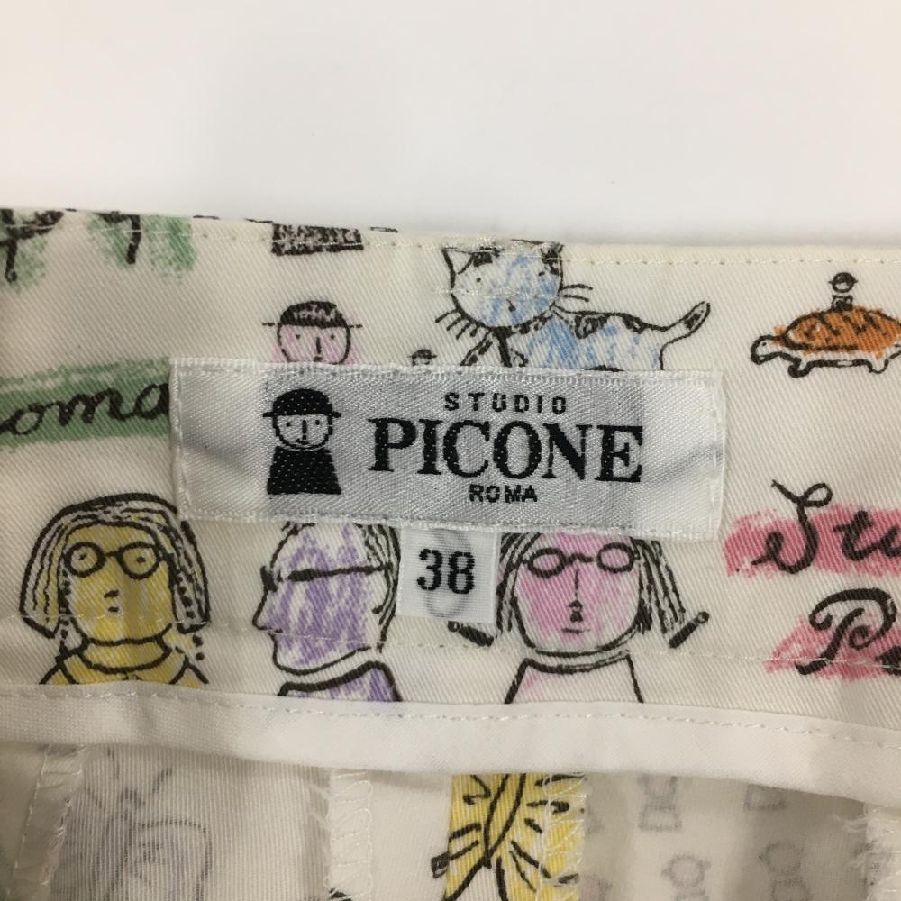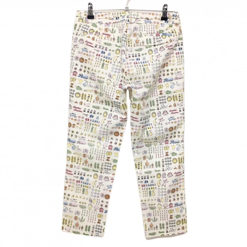 【超美品】ピッコーネ パンツ 白×マルチ 総柄 太陽 ハート フェイクポケット レディース 38(M) ゴルフウェア PICONE