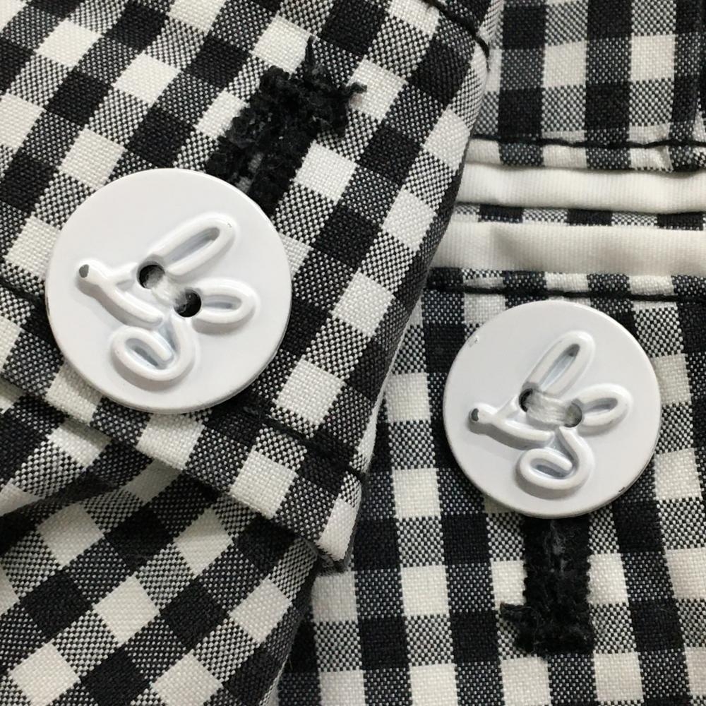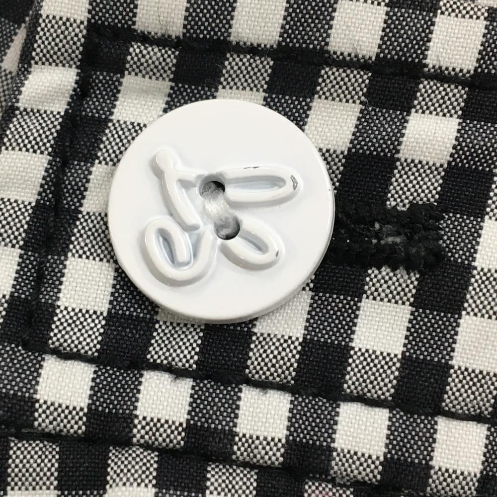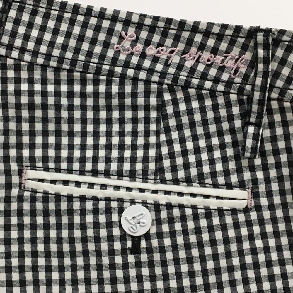 【美品】ルコックゴルフ パンツ 黒×白 ギンガムチェック ストレッチ ロゴ刺しゅう レディース 9 ゴルフウェア le coq sportif
