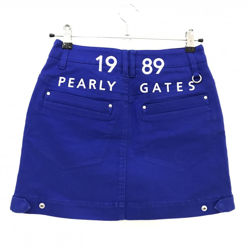 【美品】パーリーゲイツ スカート ブルー ロゴ白 ストレッチ レディース 0(S) ゴルフウェア PEARLY GATES
