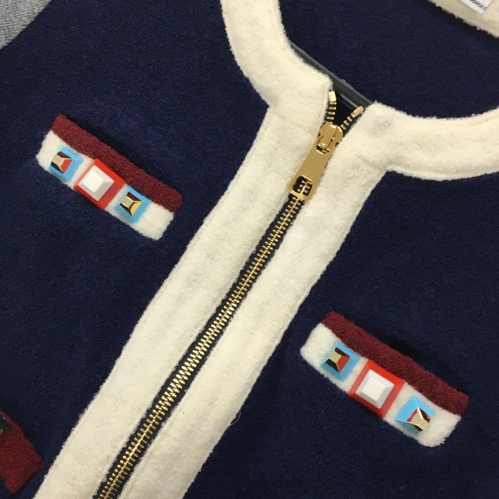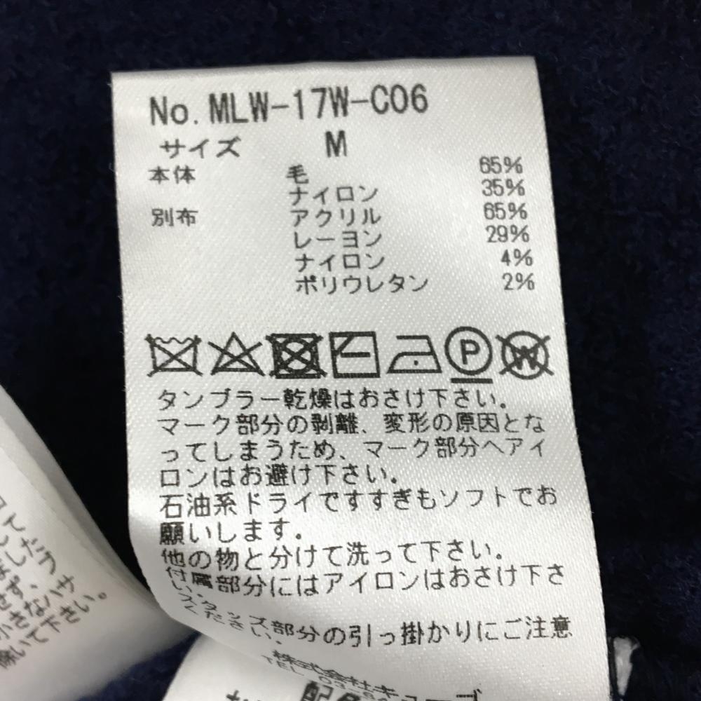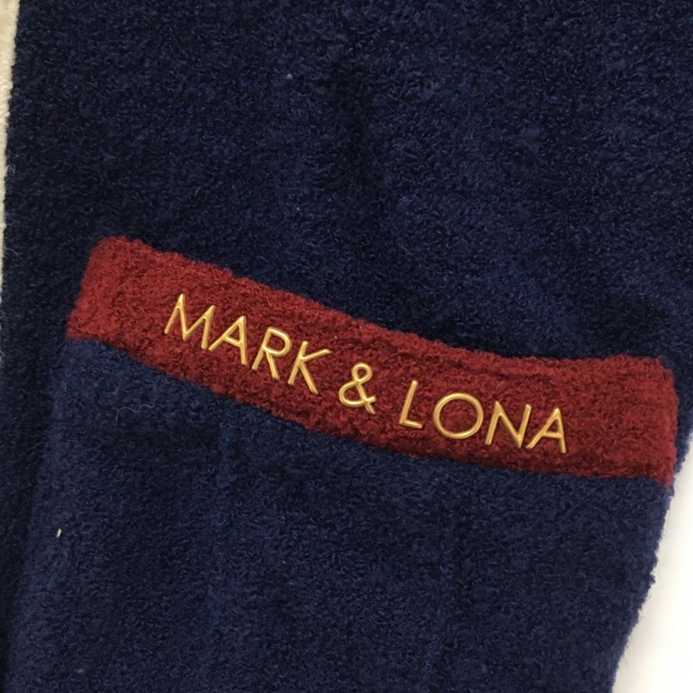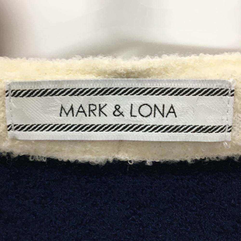 【美品】マークアンドロナ ニットジャケット ネイビー×白×グレー ウール混 異素材 レディース M ゴルフウェア MARK&LONA