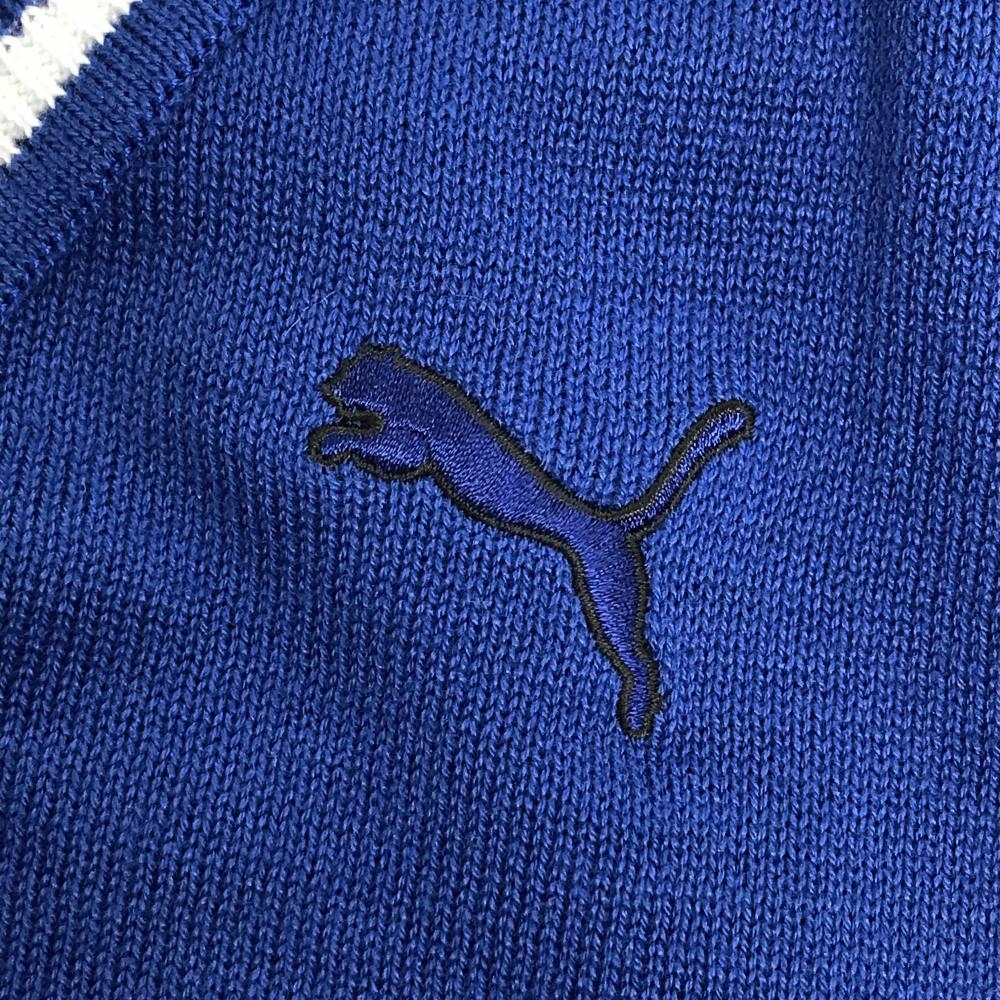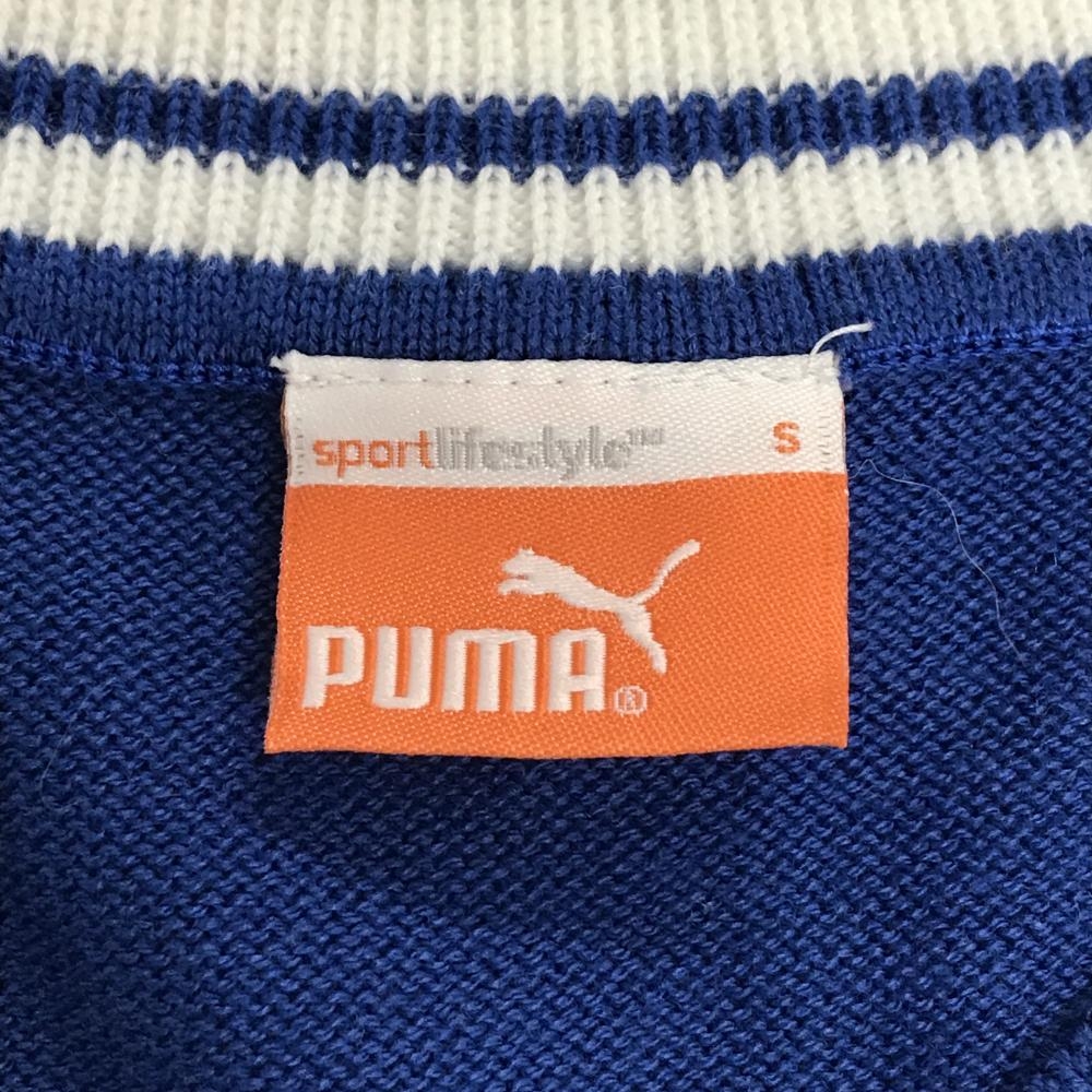 【超美品】プーマ ニットベスト ブルー Vネック ロゴ刺しゅう レディース S ゴルフウェア PUMA