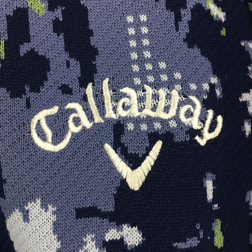 【超美品】キャロウェイ セーター ネイビー×ライトパープル 総柄 ニット メンズ L ゴルフウェア Callaway