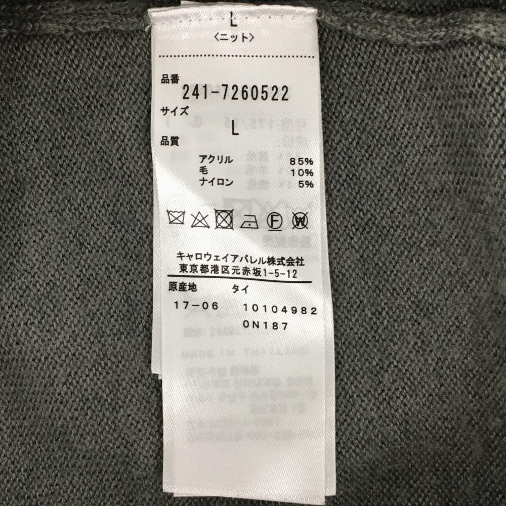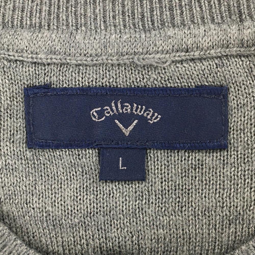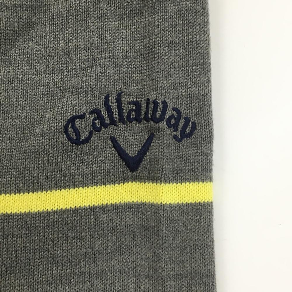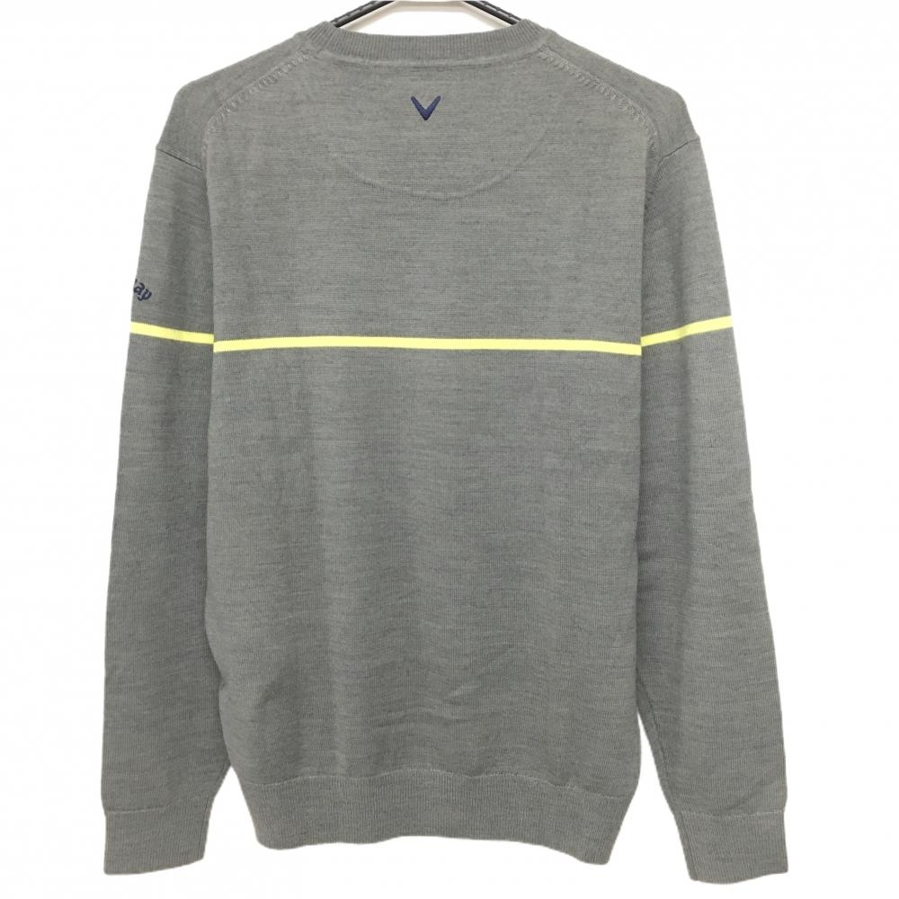 【美品】キャロウェイ セーター グレー×白×イエロー 胸元ビッグロゴ ウール混 メンズ L ゴルフウェア Callaway