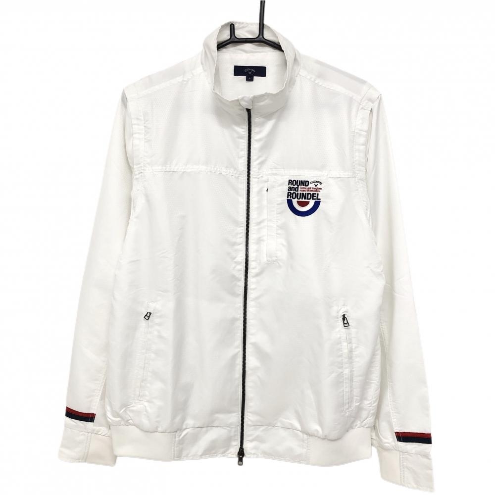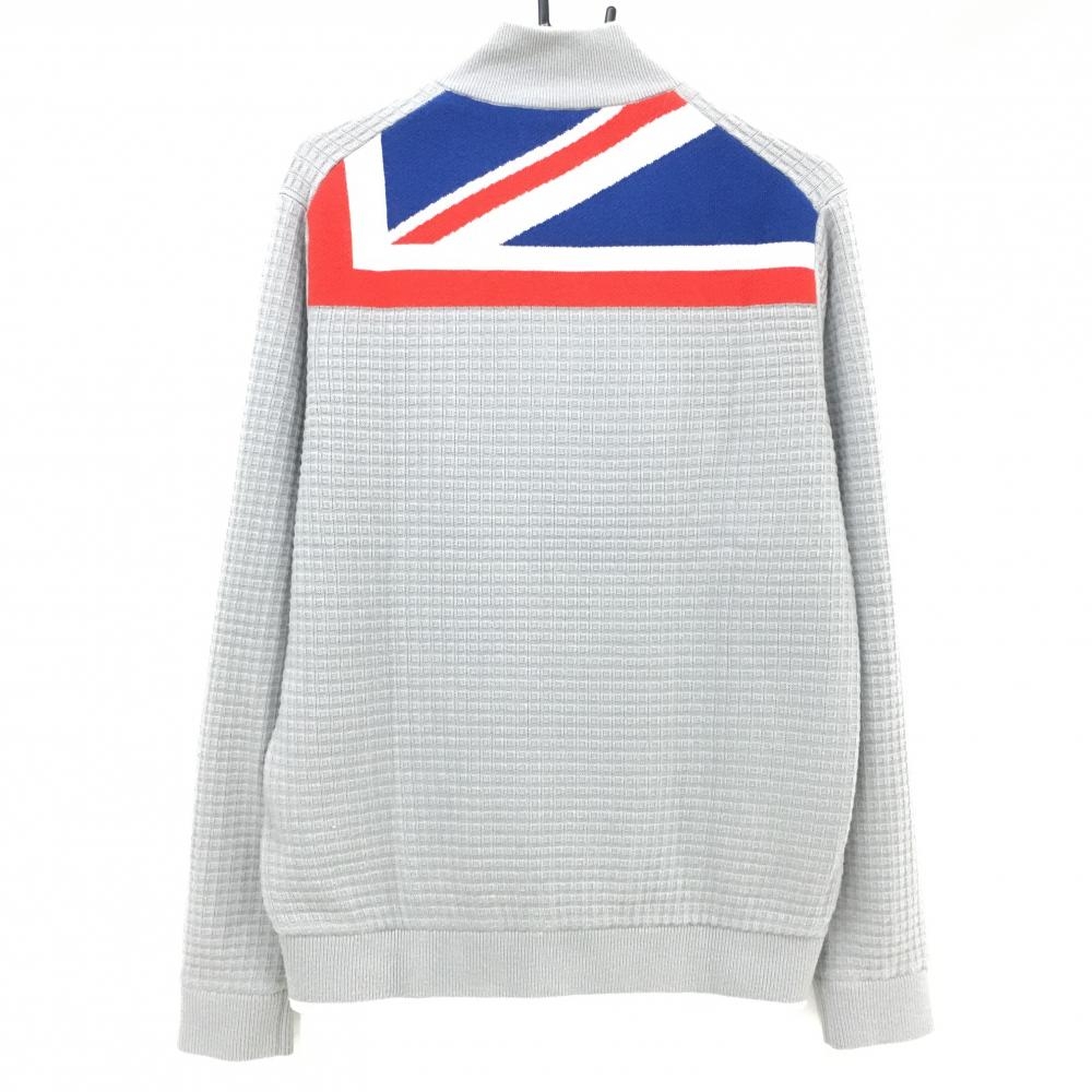 【美品】キャロウェイ ニットジャケット グレー×ネイビー 後上部柄 裏地付 ブルゾン ウール混 メンズ L ゴルフウェア Callaway