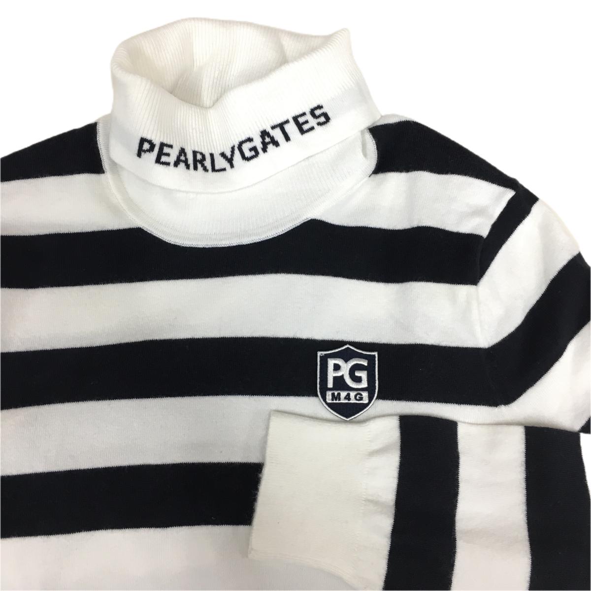 【美品】パーリーゲイツ タートルネックセーター 白×ダークネイビー ボーダー ニット レディース 1(M) ゴルフウェア PEARLY GATES