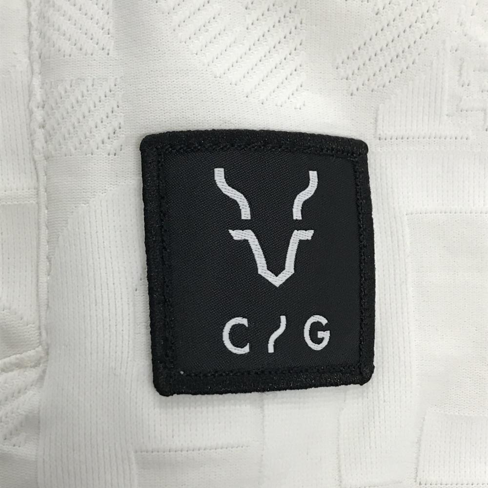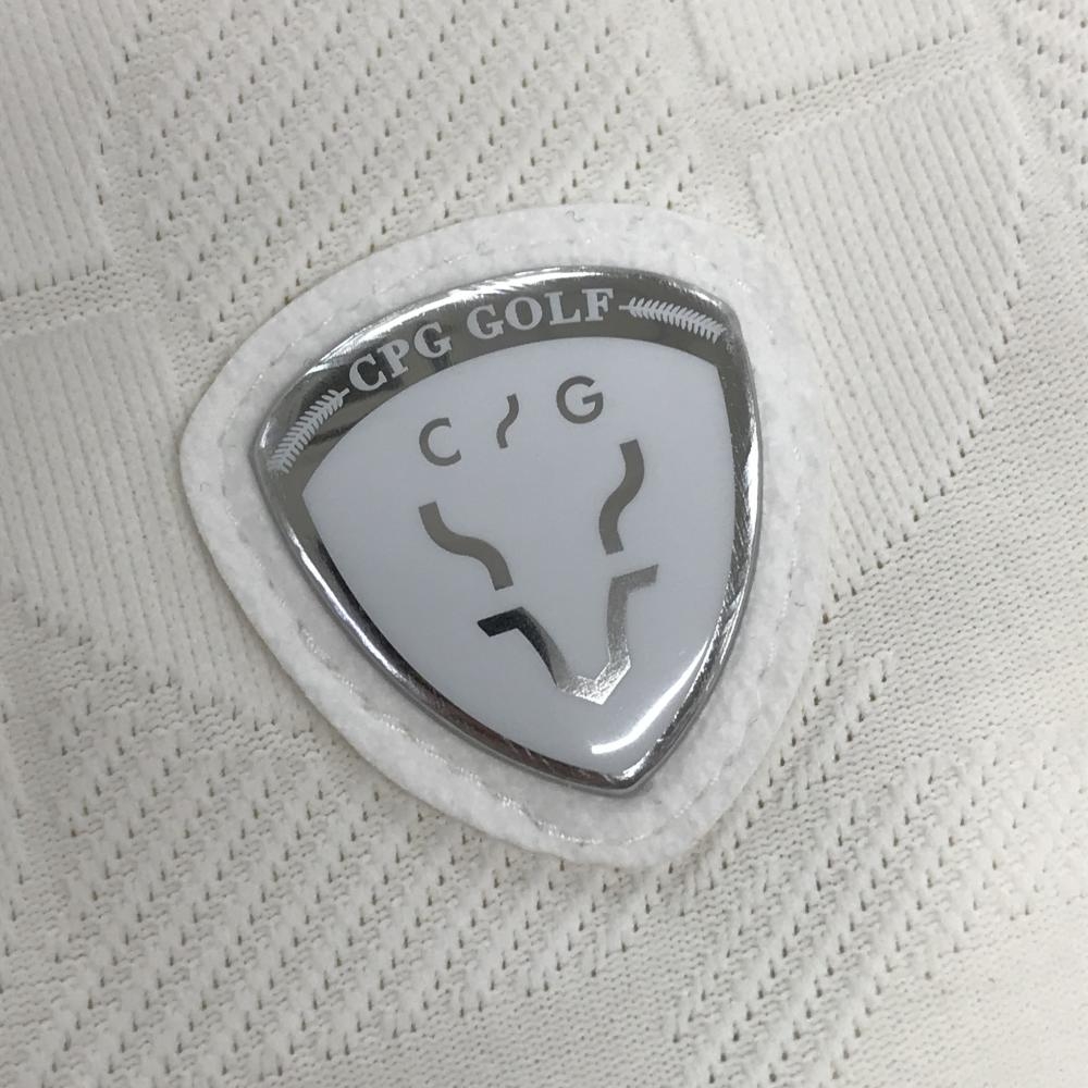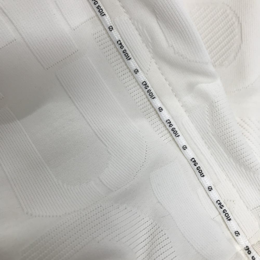 【新品】CPG ジャケットブルゾン 白 英字地模様 肩・袖ロゴライン 立体ロゴ レディース 3(L) ゴルフウェア 2024年モデル CPG