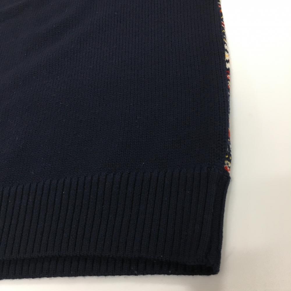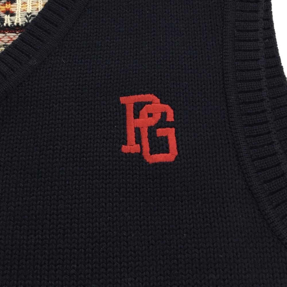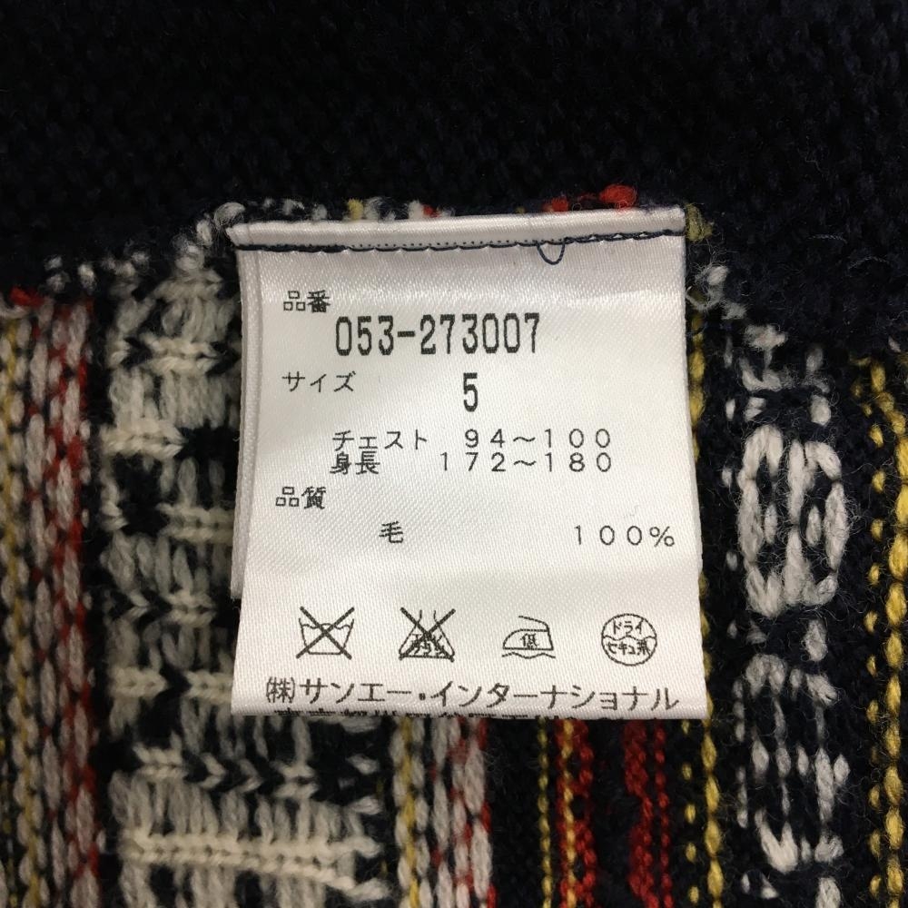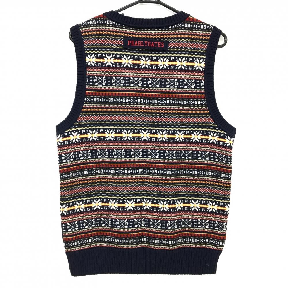 【美品】パーリーゲイツ ニットベスト ネイビー×レッド 背面ノルディック柄 ウール100% メンズ 5(L) ゴルフウェア PEARLY GATES