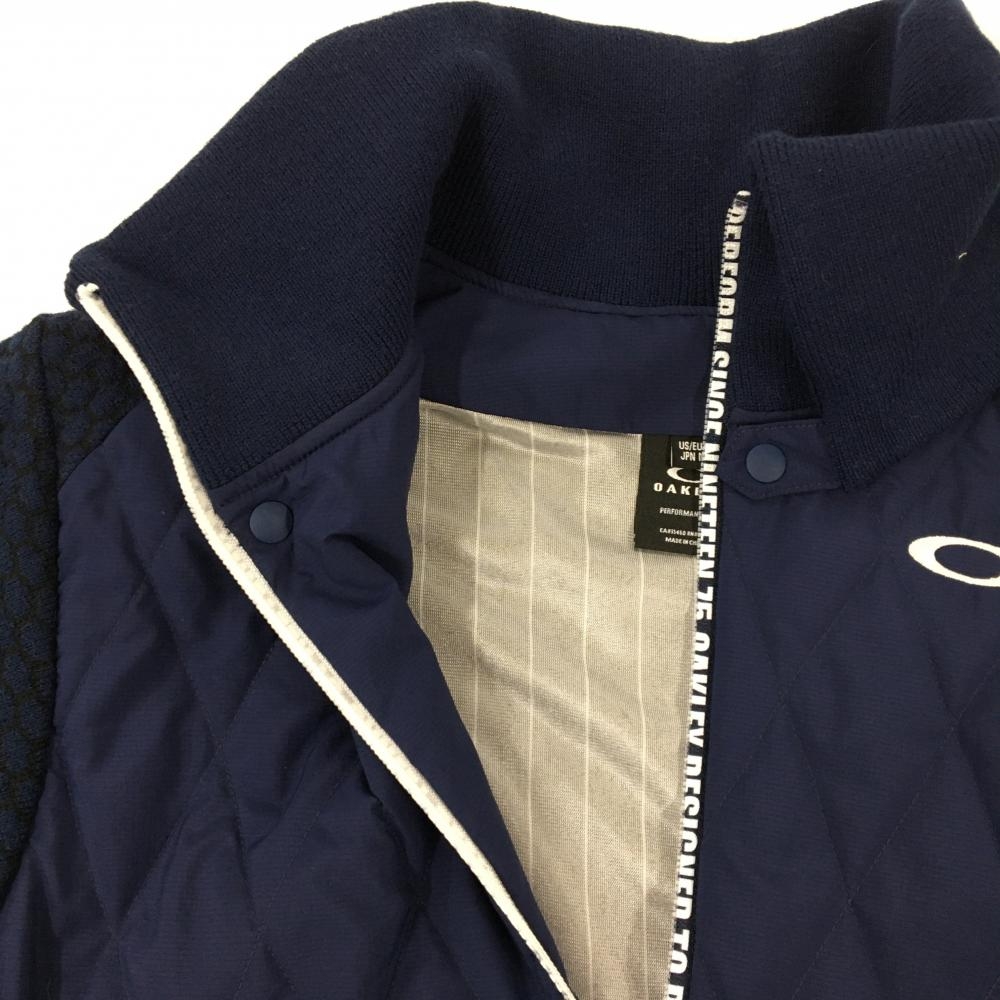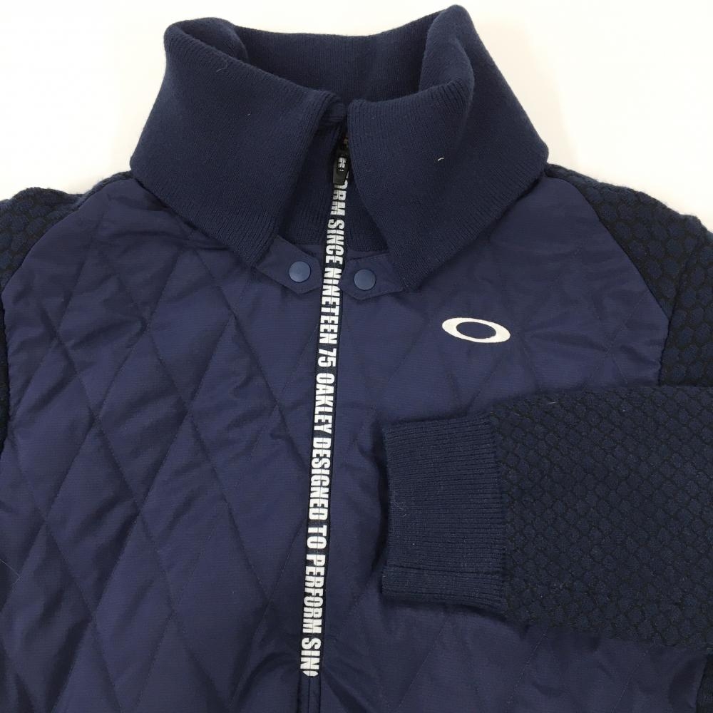 【美品】オークリー 中綿ニットジャケット ネイビー 前身頃中綿 蓄熱裏地 襟付 メンズ M ゴルフウェア Oakley