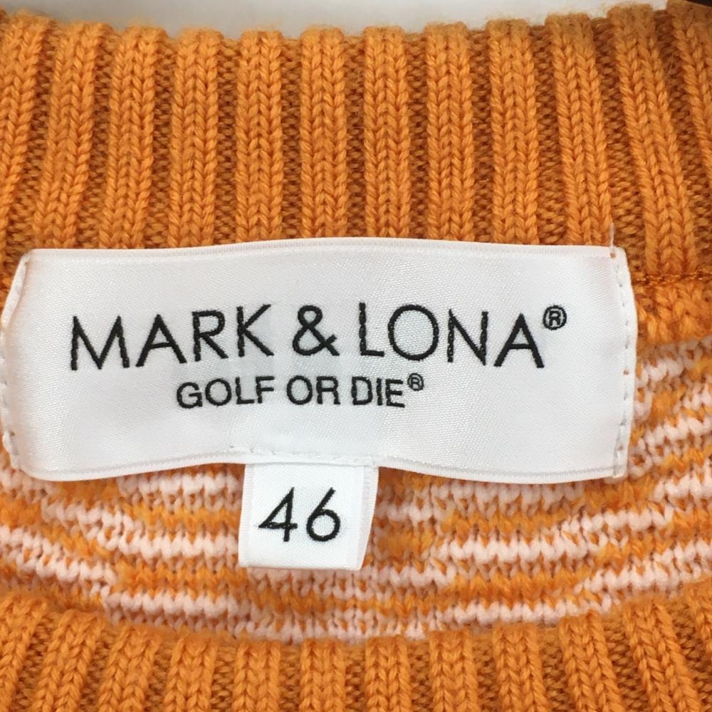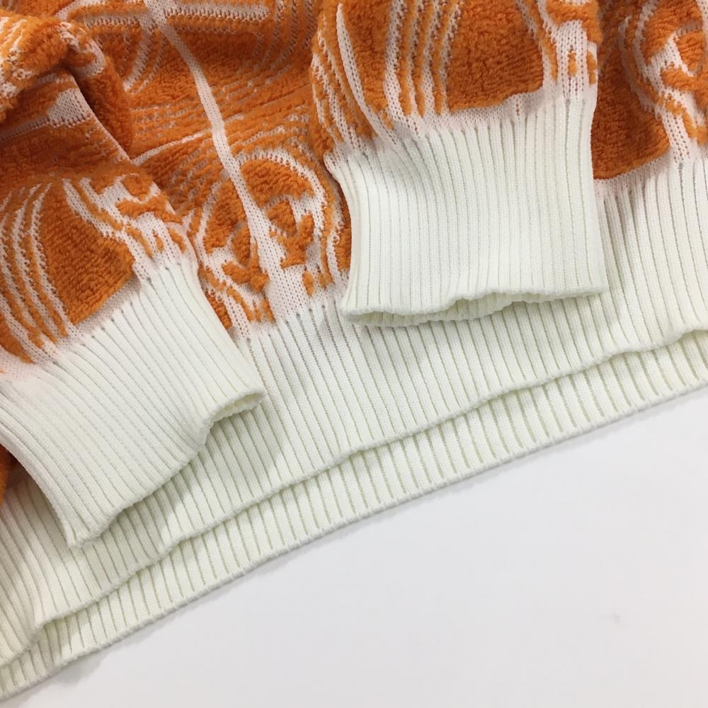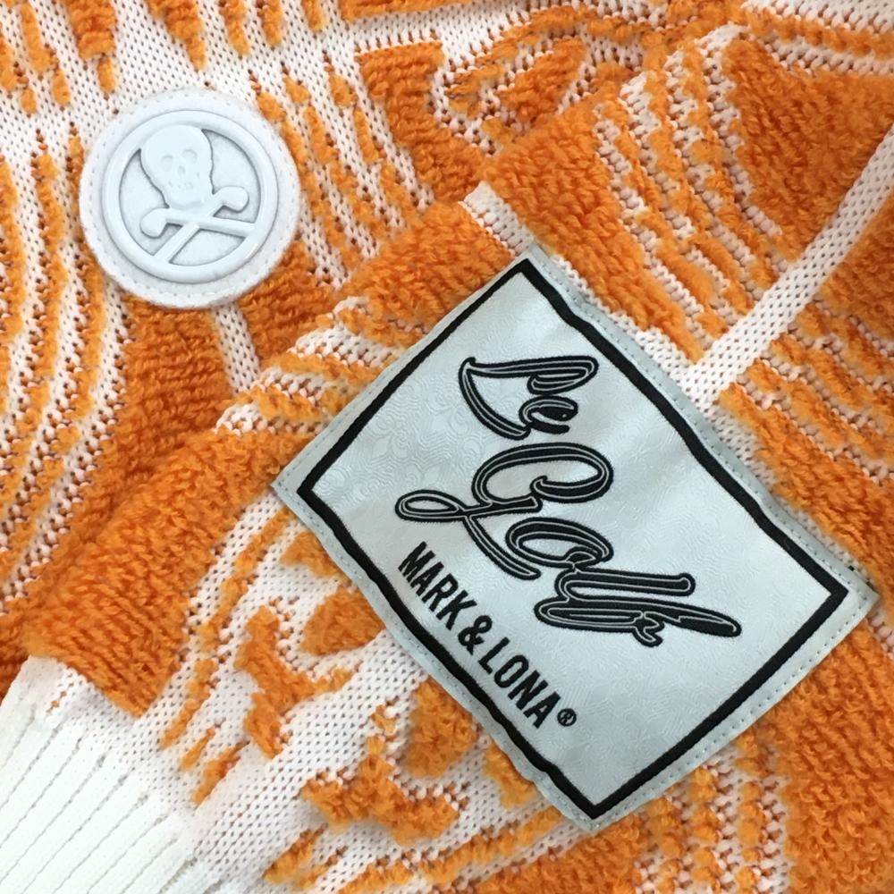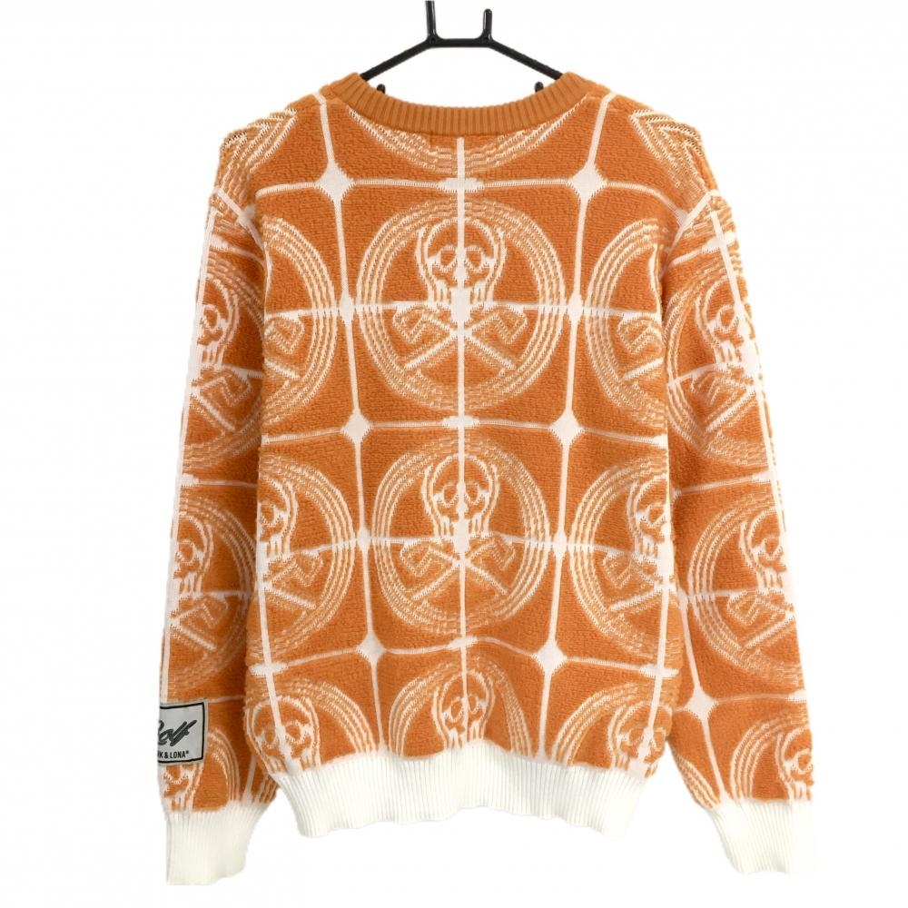 【美品】マークアンドロナ セーター オレンジ×白 スカル総柄編み ニット ウール混 リブ伸び少 メンズ 46 ゴルフウェア MARK&LONA