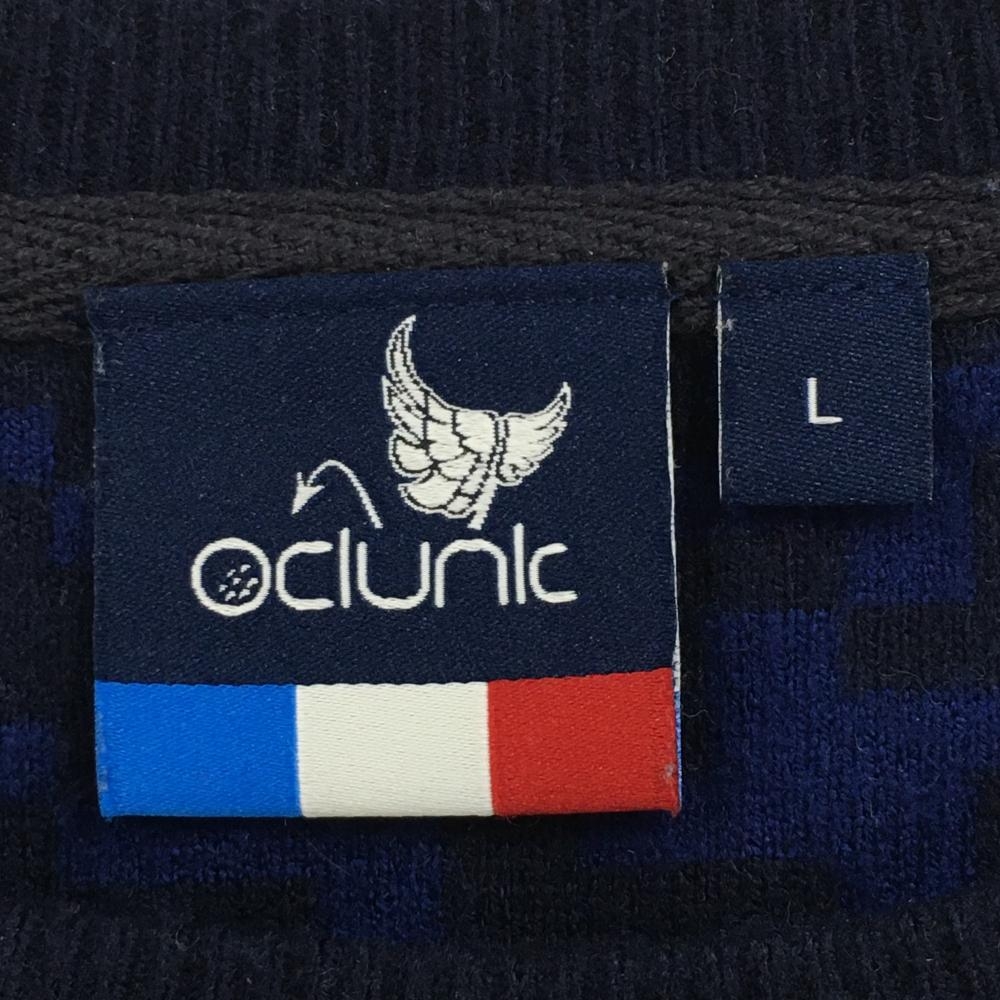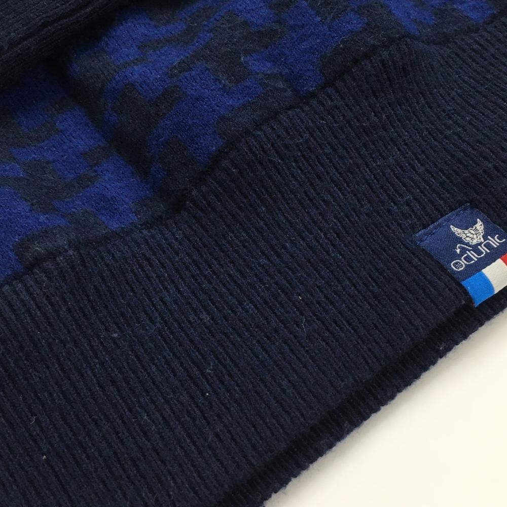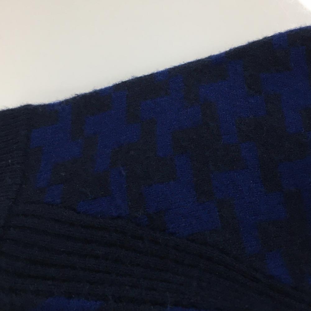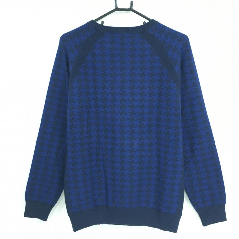 【美品】クランク セーター ブルー×ネイビー 千鳥格子調 前身頃裏地付 メンズ L ゴルフウェア CLUNK