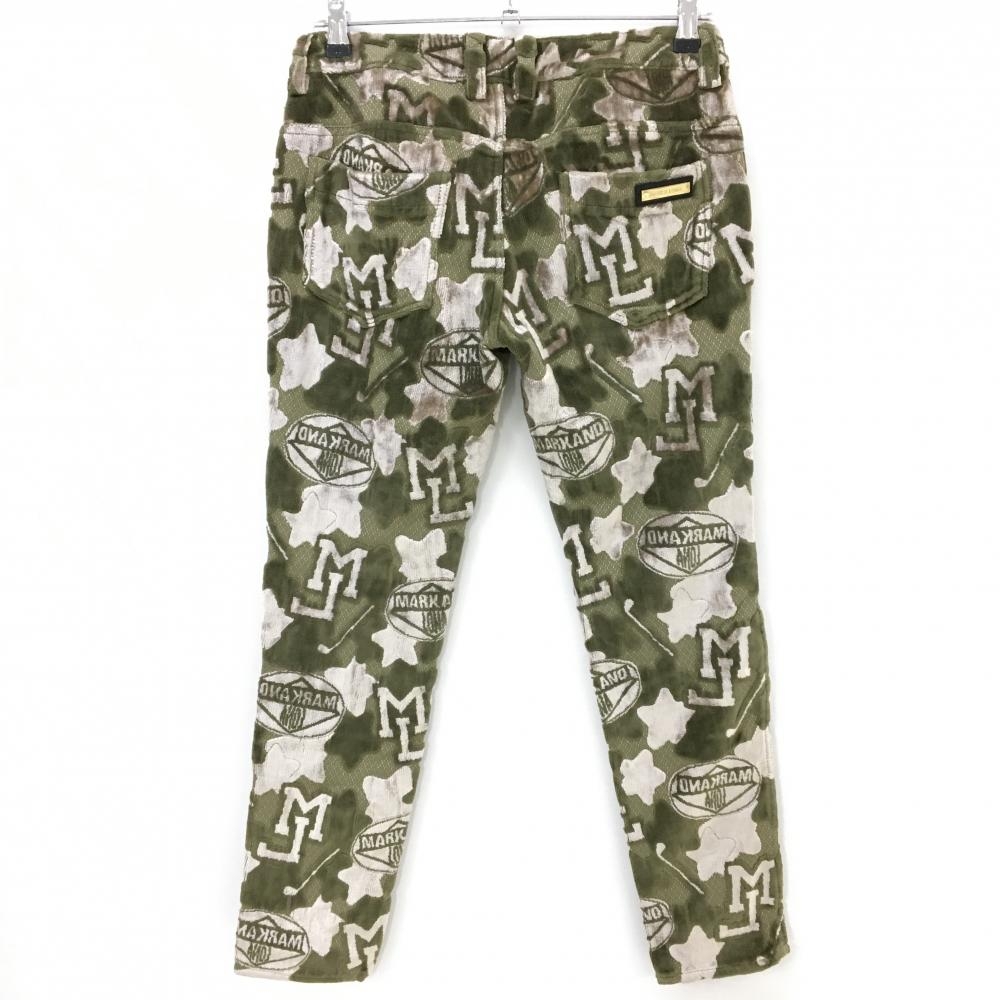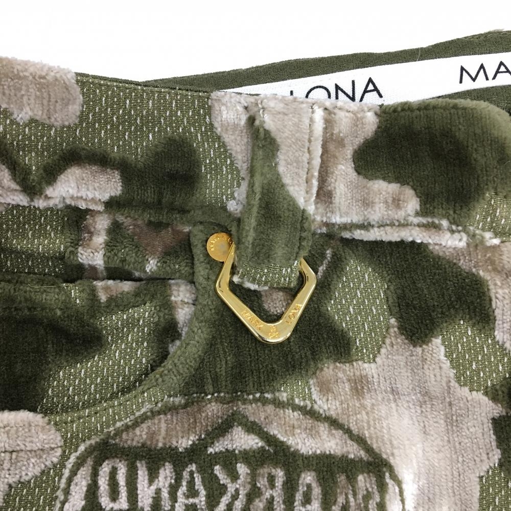 【超美品】マークアンドロナ パンツ カーキ×ベージュ カモフラ柄 迷彩 一部ベロア調 ストレッチ レディース M ゴルフウェア MARK&LONA