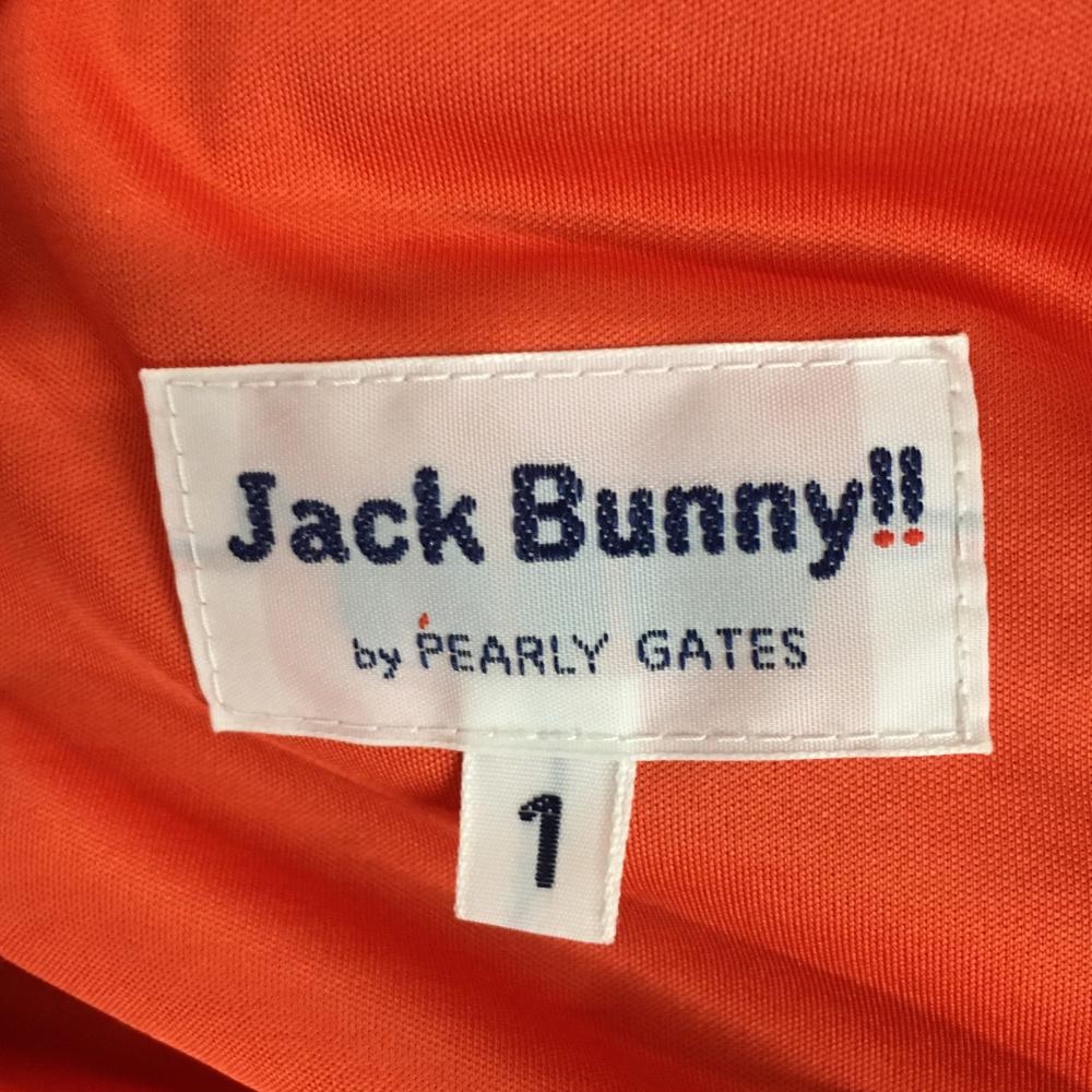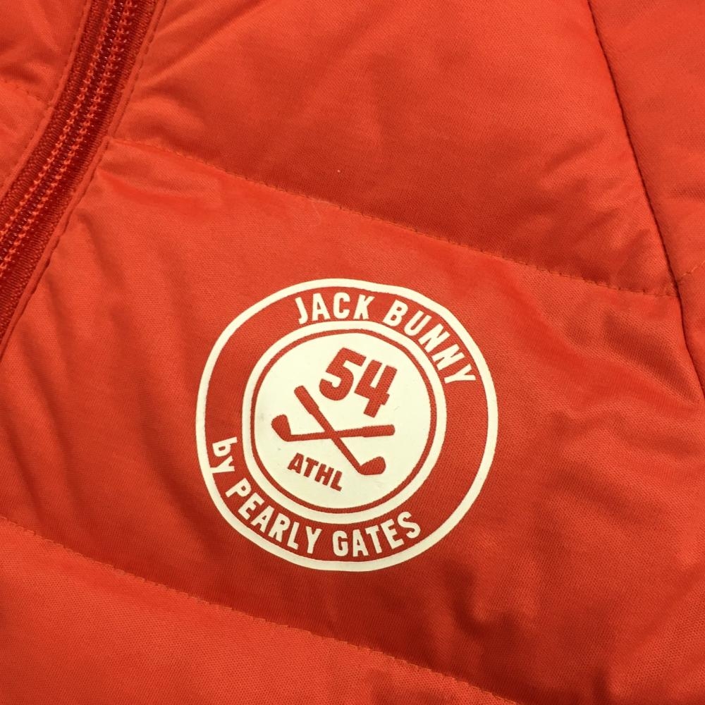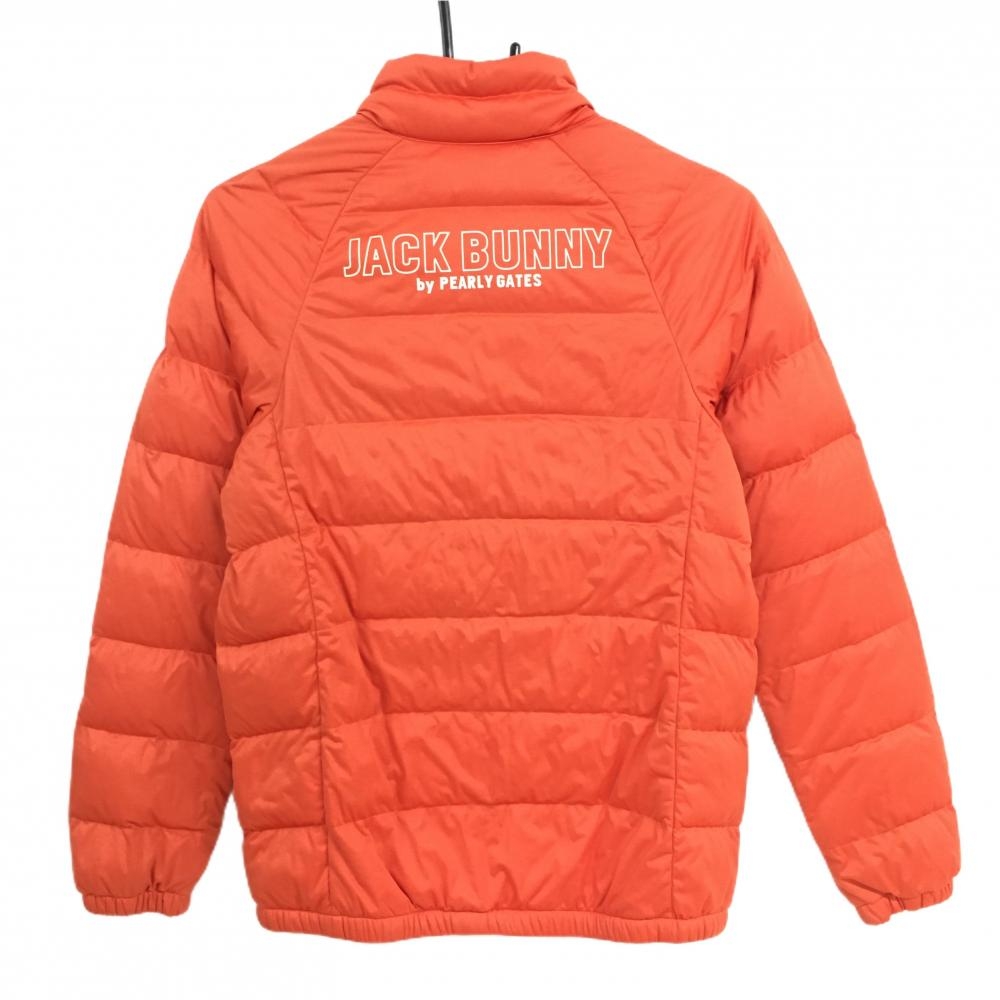 【美品】ジャックバニー ダウンジャケット オレンジ×白 ロゴプリント レディース 1(M) ゴルフウェア Jack Bunny