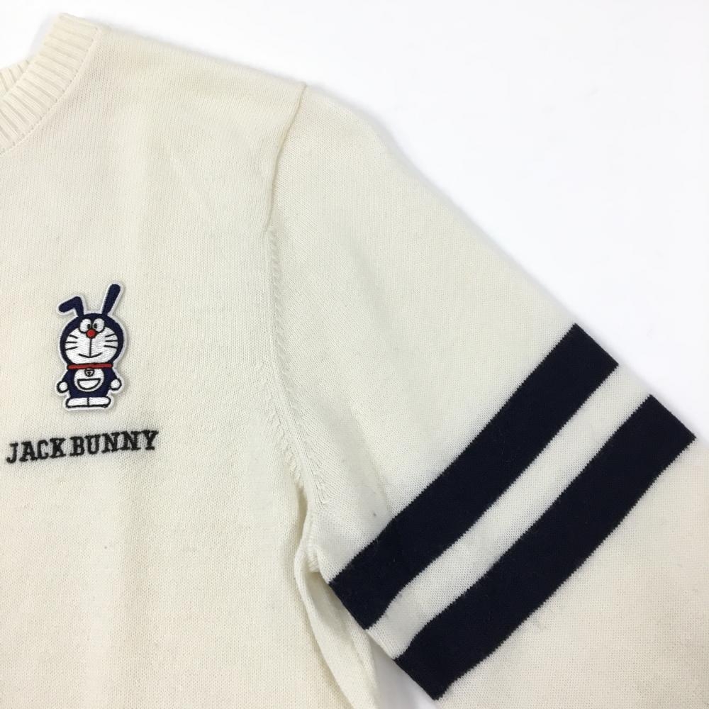 【超美品】ジャックバニー×ドラえもん セーター 白×ネイビー ニット ウール混 袖ライン レディース 2(L) ゴルフウェア Jack Bunny