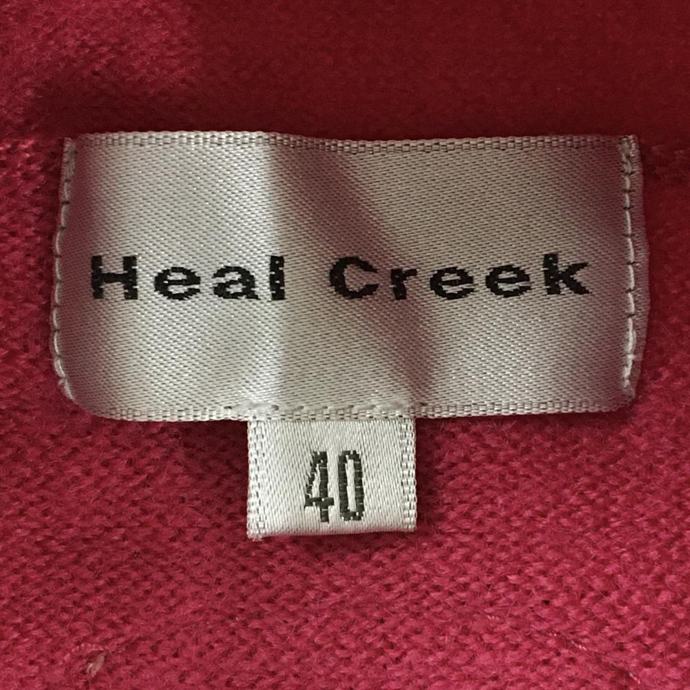 ヒールクリーク ハイネックセーター ピンク×ダークブラウン 袖ライン 一部ラメ レディース 40(M) ゴルフウェア Heal Creek
