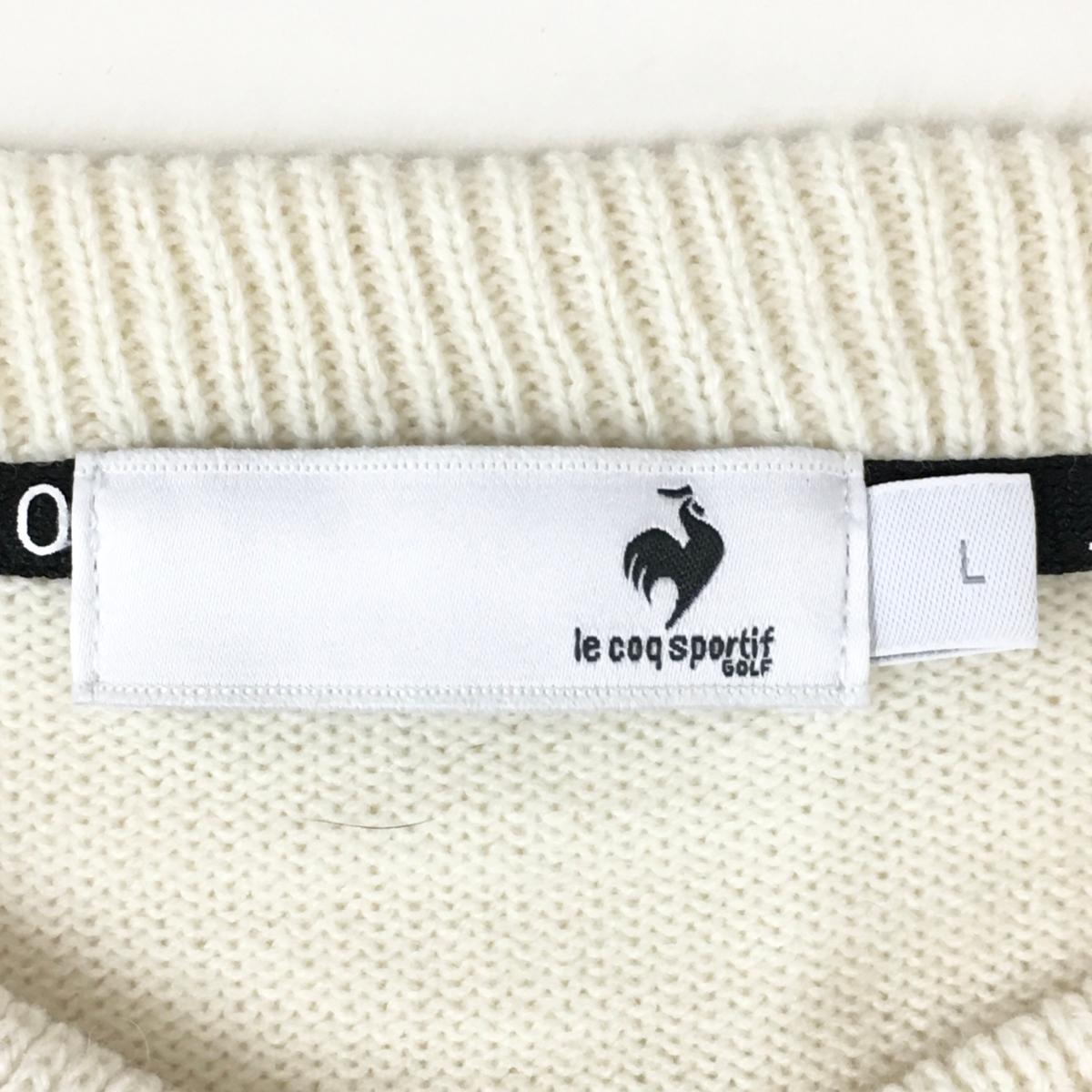 【超美品】ルコックゴルフ セーター アイボリー×黒 ニット ウール混 レディース L ゴルフウェア 2024年モデル le coq sportif