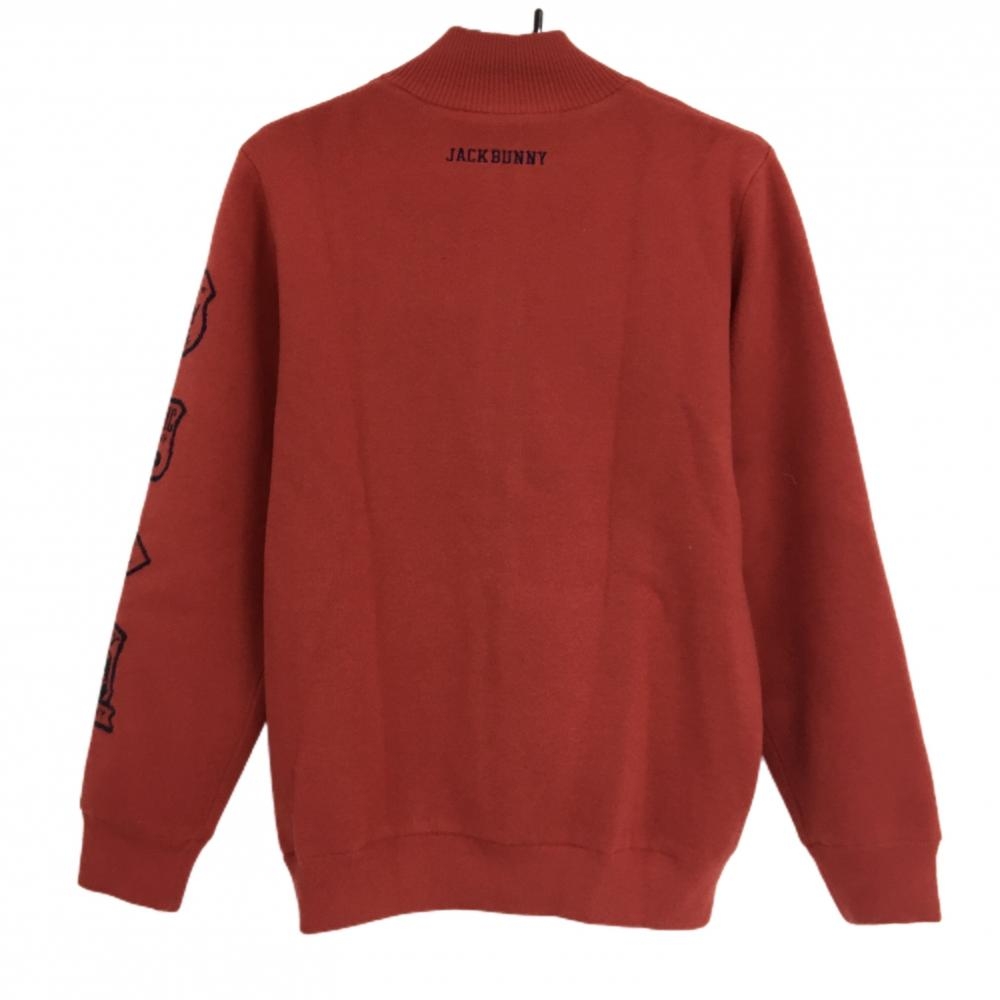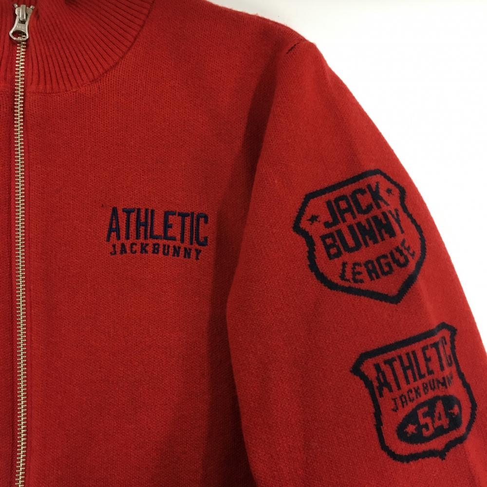 【美品】ジャックバニー ニットジャケット レッド系×ネイビー ダブルジップ 裏地付き 袖ロゴ メンズ 4(M) ゴルフウェア Jack Bunny
