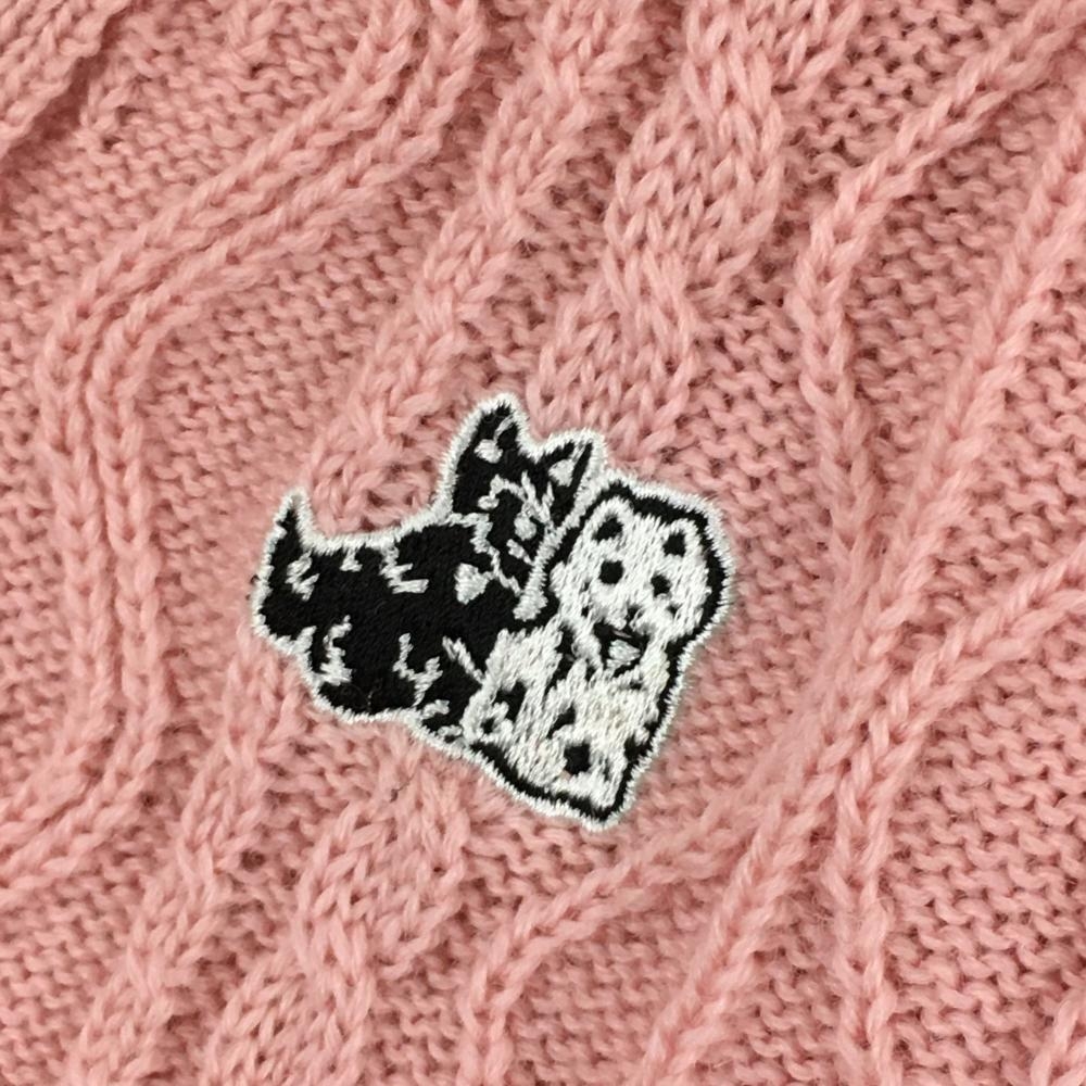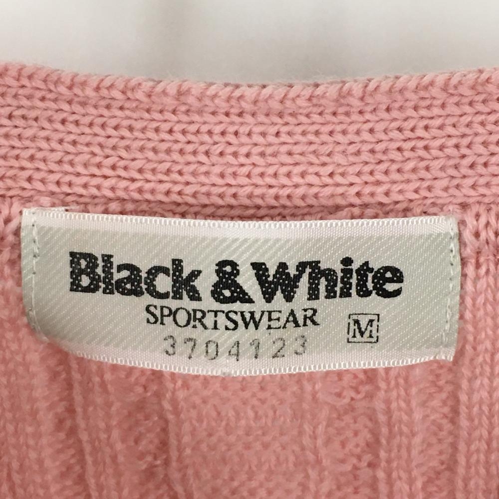 【美品】ブラックアンドホワイト カーディガン ライトピンク 総柄 ウール100% ニット メンズ M ゴルフウェア Black&White