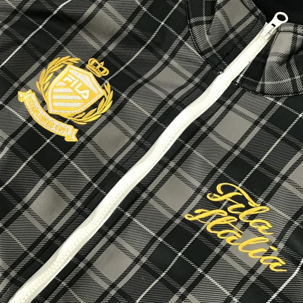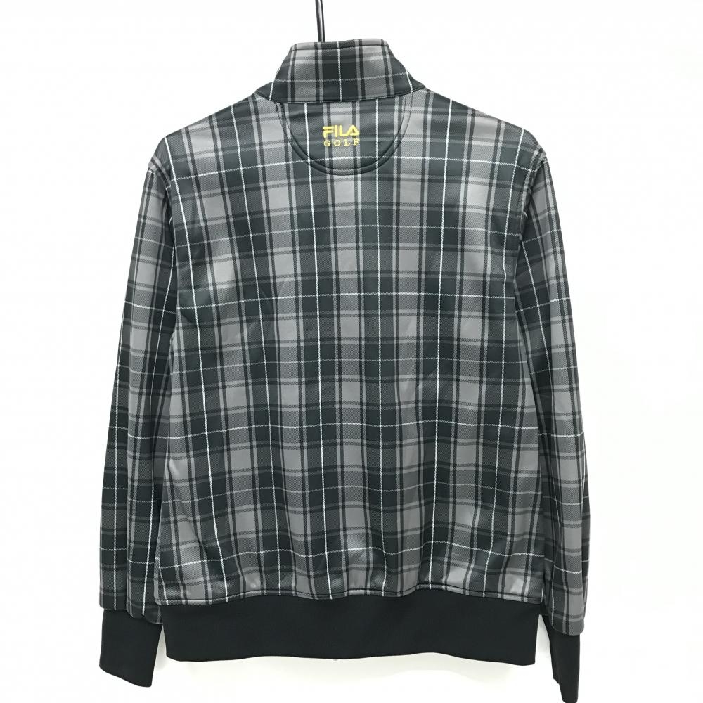 【美品】フィラゴルフ ジャケット グレー×黒 チェック 裏起毛 ロゴ刺しゅう ブルゾン メンズ M ゴルフウェア FILA GOLF
