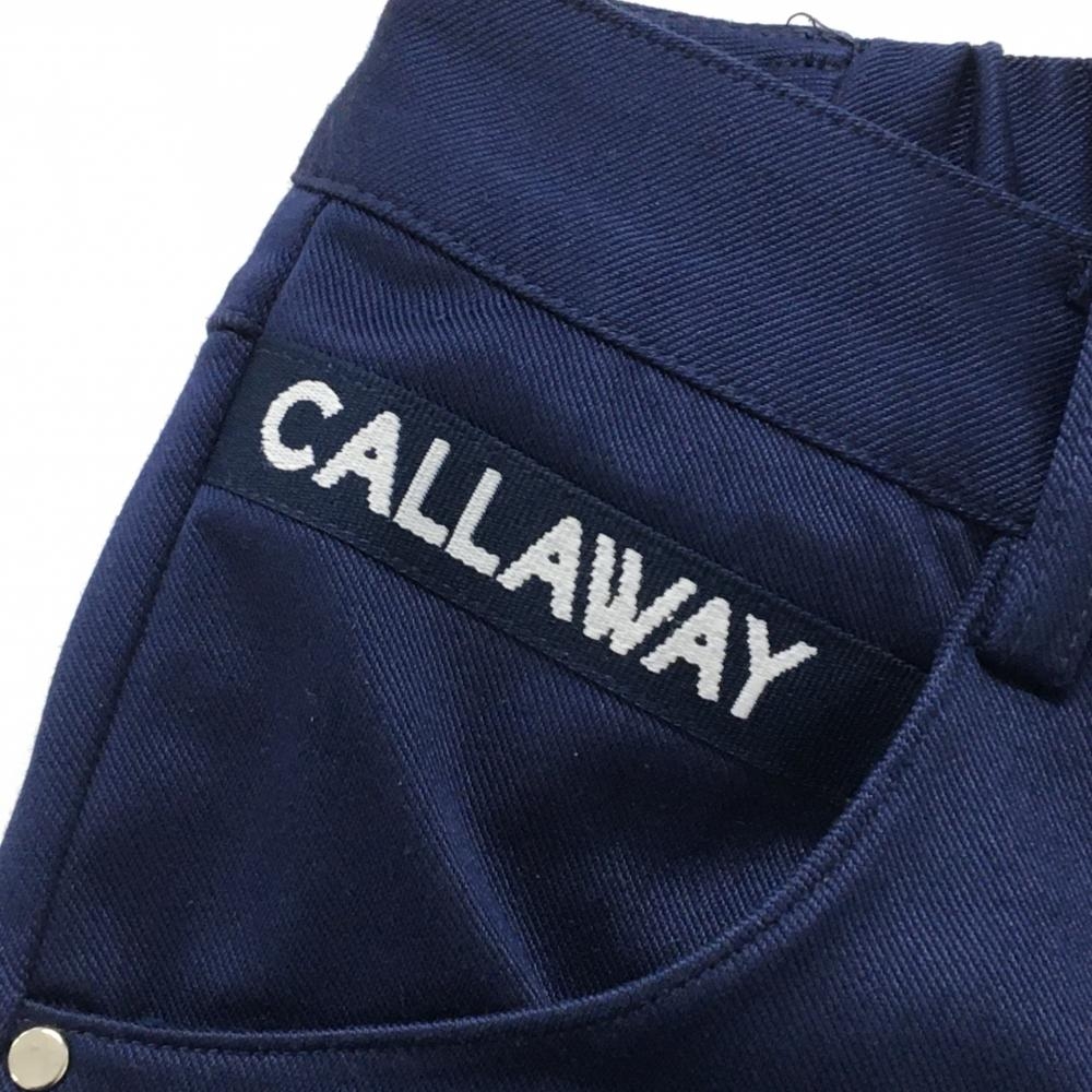 【超美品】キャロウェイ パンツ ネイビー ロゴ刺しゅう ウエスト後ろゴム レディース S ゴルフウェア Callaway