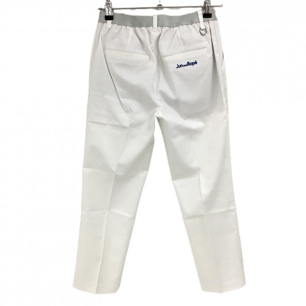 【新品】ジュンアンドロペ パンツ 白×ライトグレー系 ウエストゴム ストレッチ レディース M ゴルフウェア JUN&ROPE