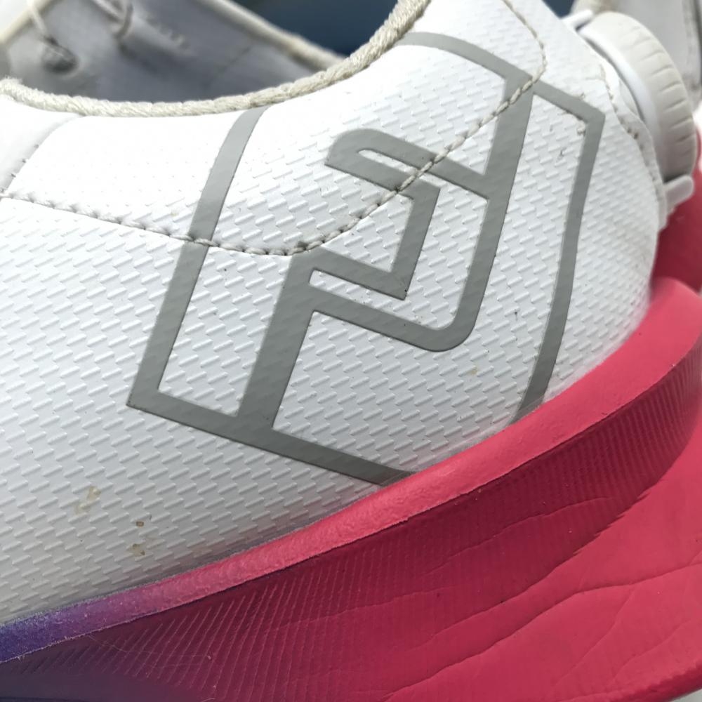【美品】フットジョイ ゴルフシューズ 白×ピンク 55459J スパイクレス ダイヤル式 BOA メンズ 24.5 ゴルフウェア 2023年モデル FootJoy
