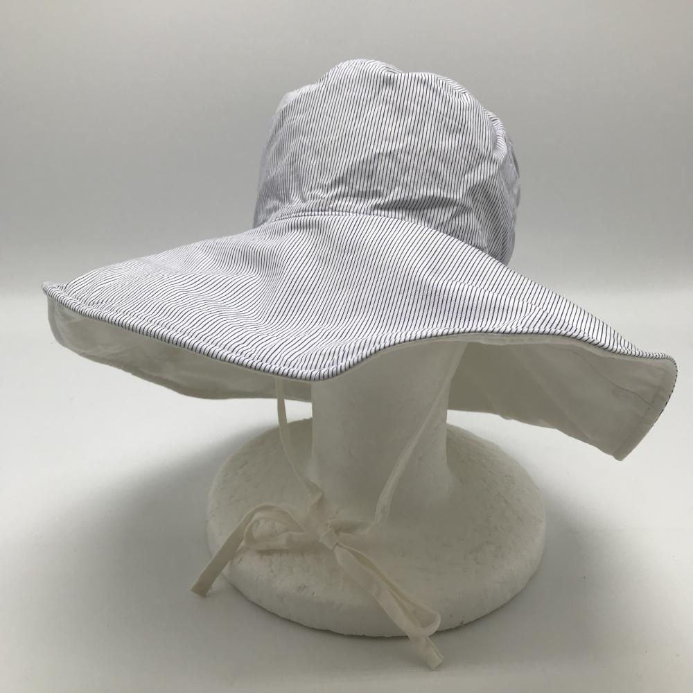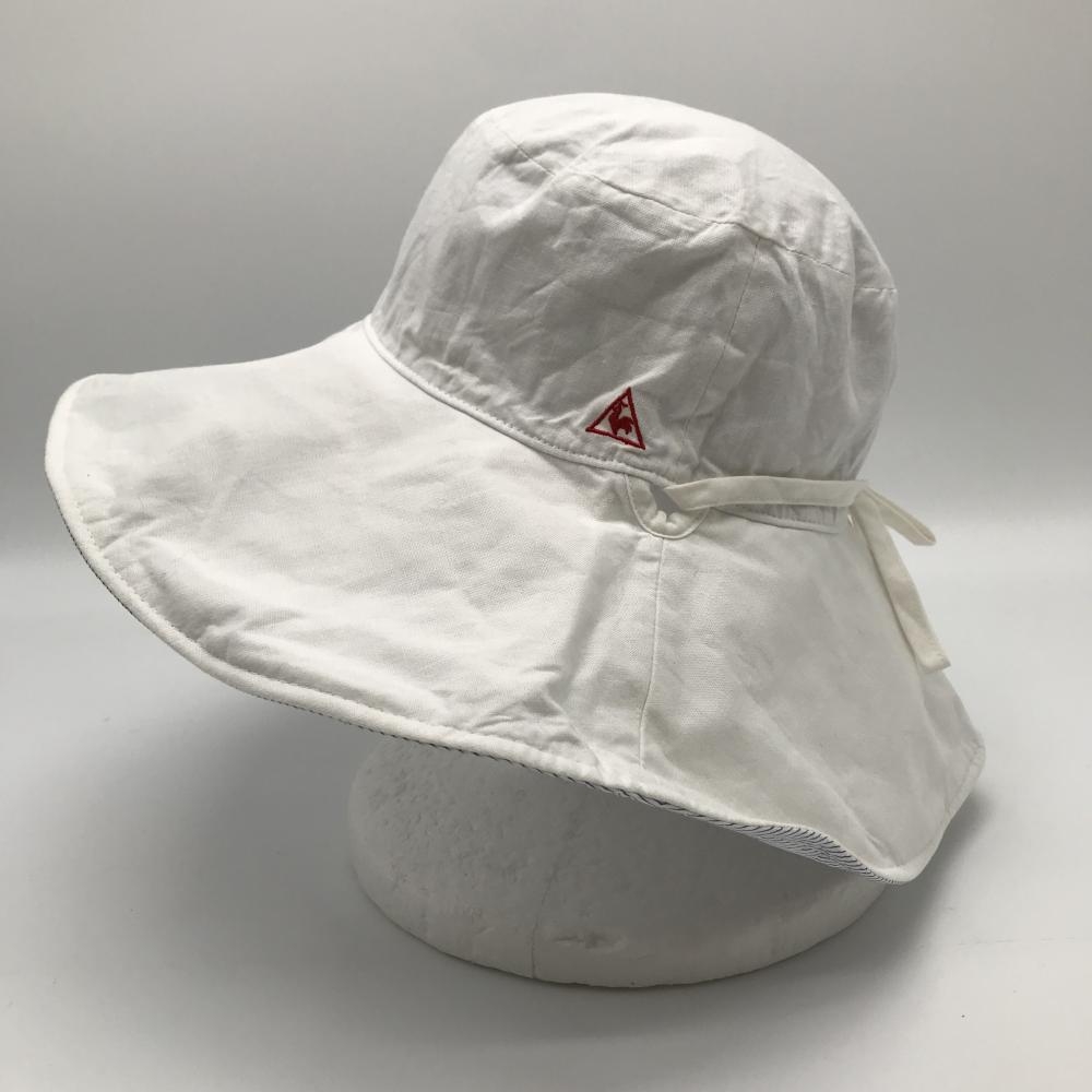 【超美品】ルコック リバーシブルハット 白×ブルー 内側ストライプ リボン レディース ゴルフウェア le coq sportif