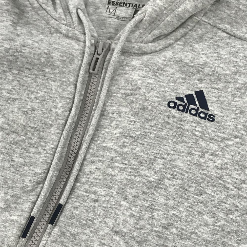【超美品】アディダス ジップパーカー 杢グレー×ネイビー 裏微起毛 サイド3ライン メンズ M ゴルフウェア adidas