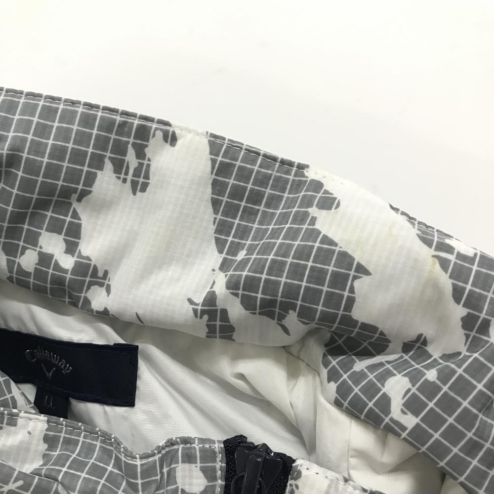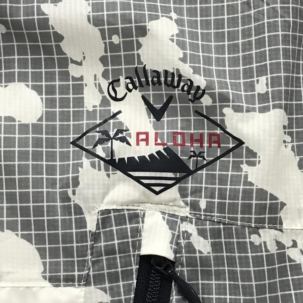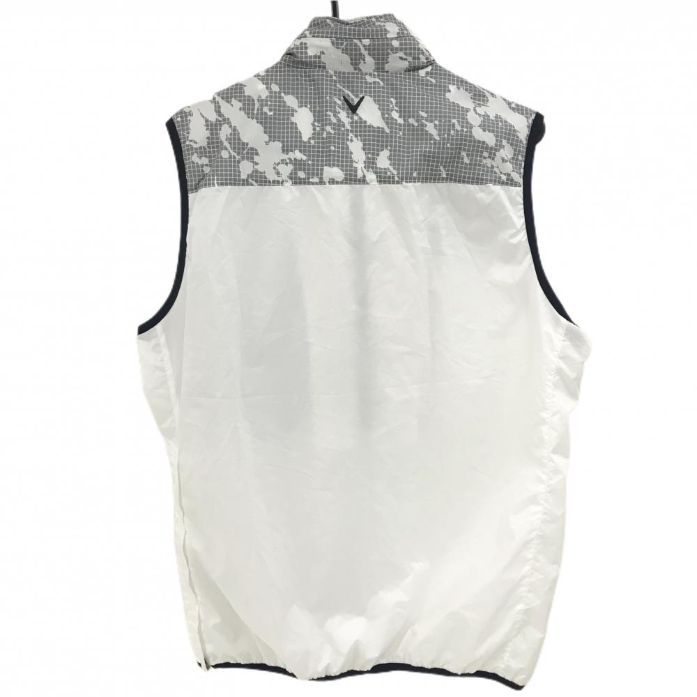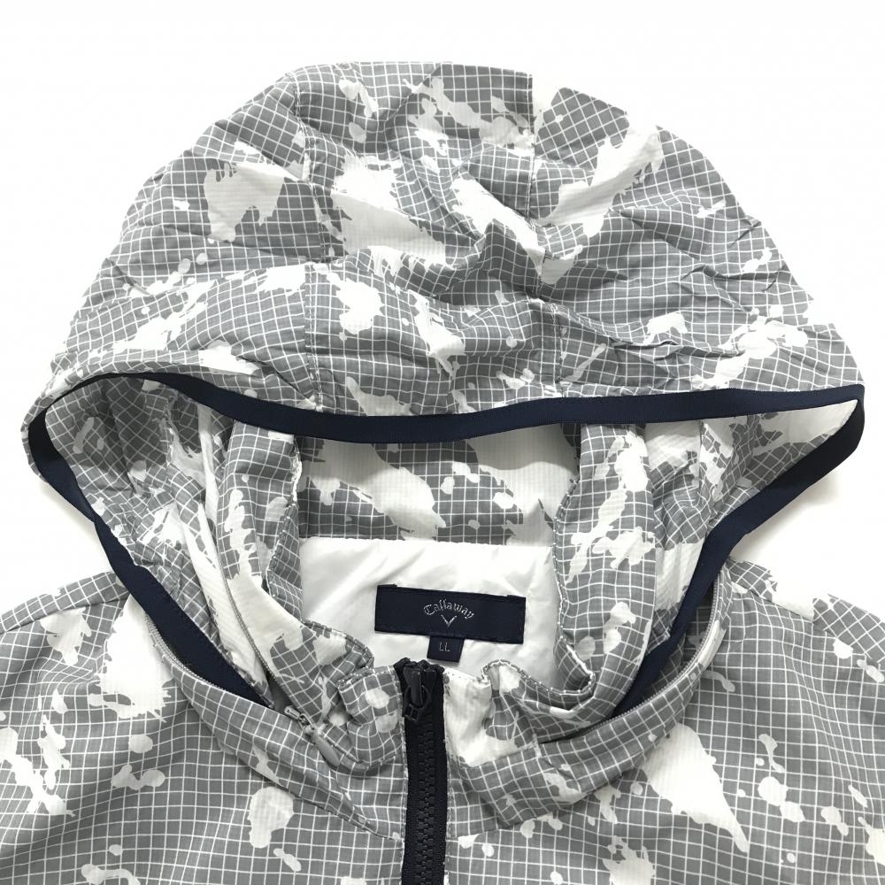 キャロウェイ アウターベスト 白×グレー 上部格子柄 フード収納可 ロゴプリント メンズ LL ゴルフウェア Callaway