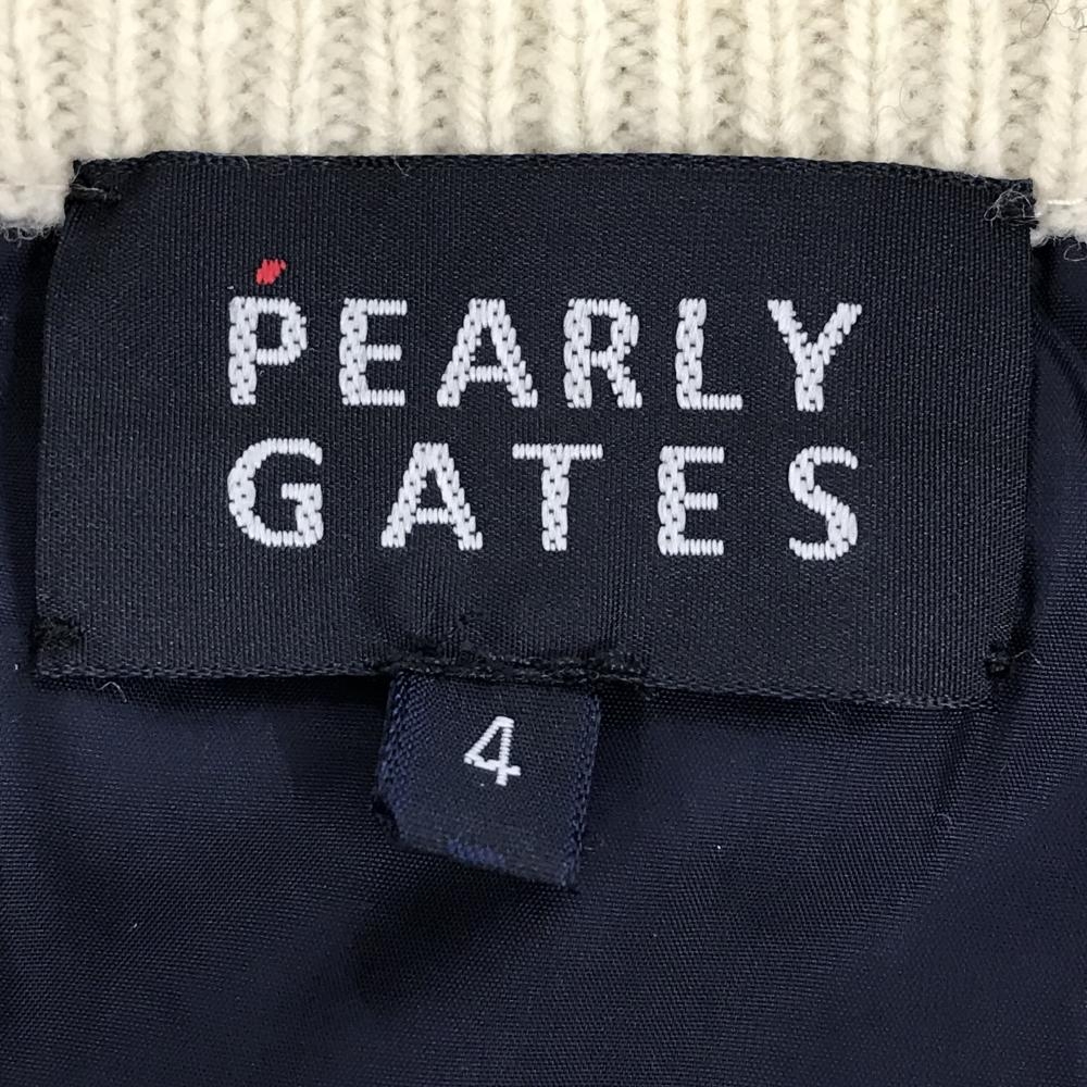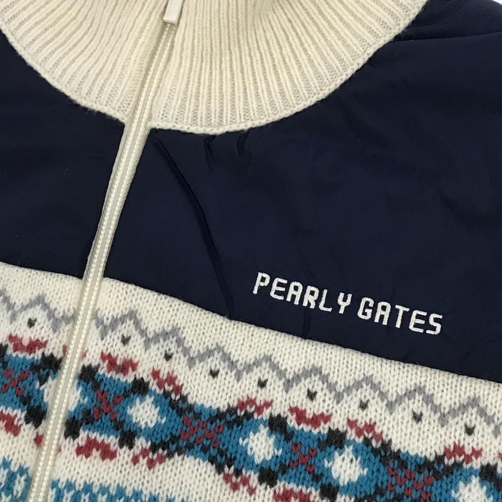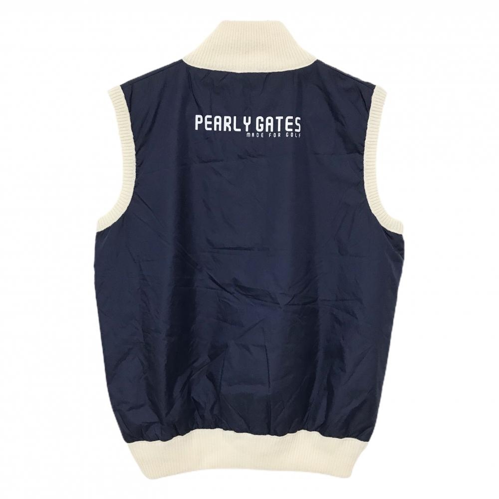 【超美品】パーリーゲイツ 中綿異素材ハイネックベスト アイボリー×ネイビー 一部中綿 前身頃柄 メンズ 4(M) ゴルフウェア PEARLY GATES