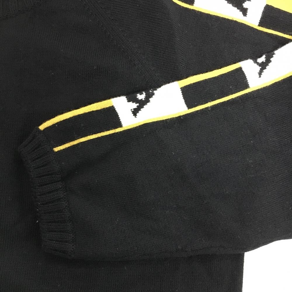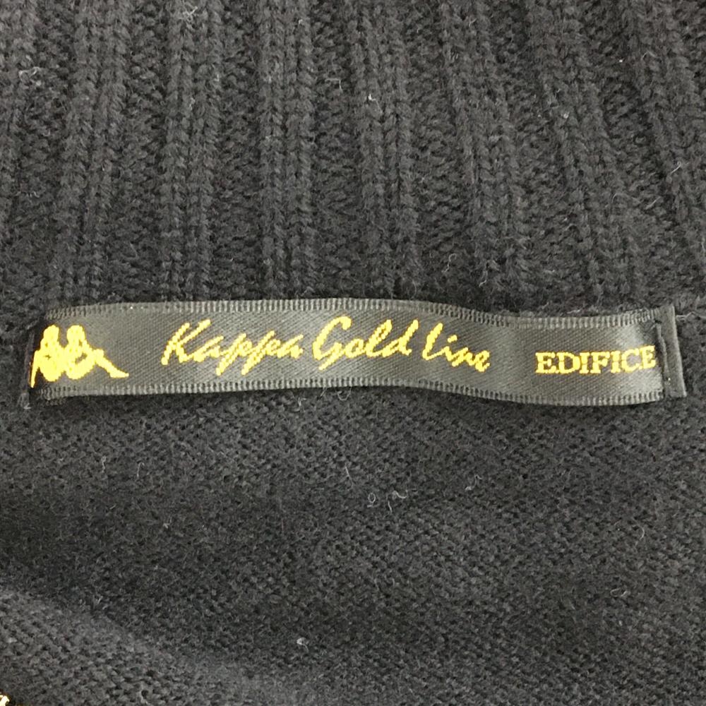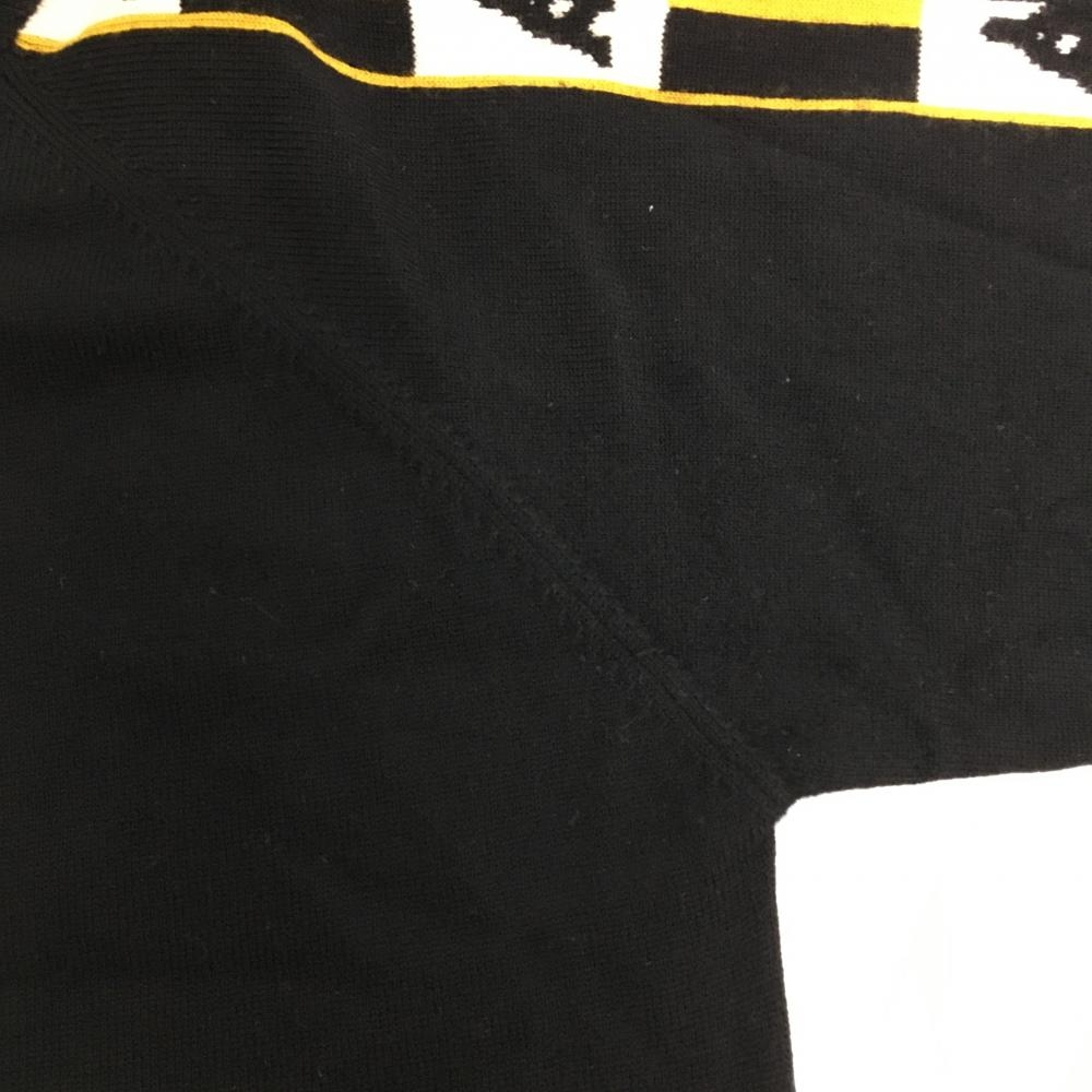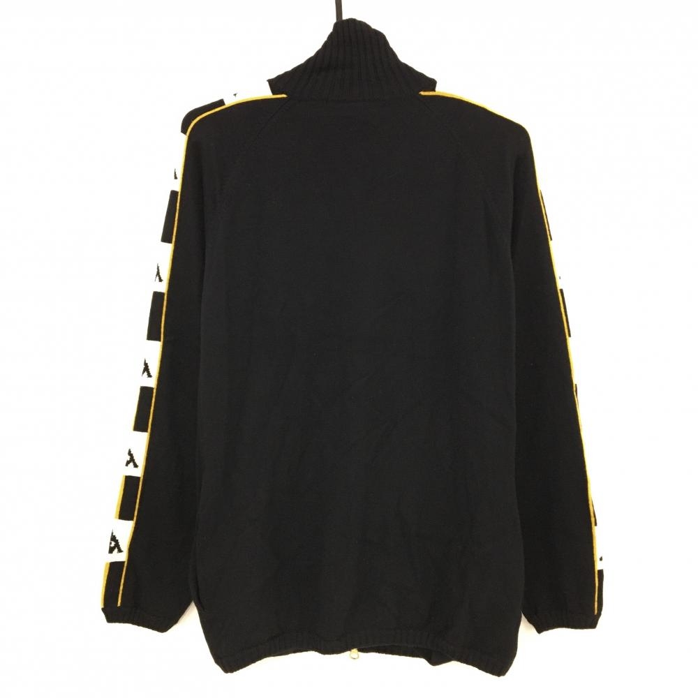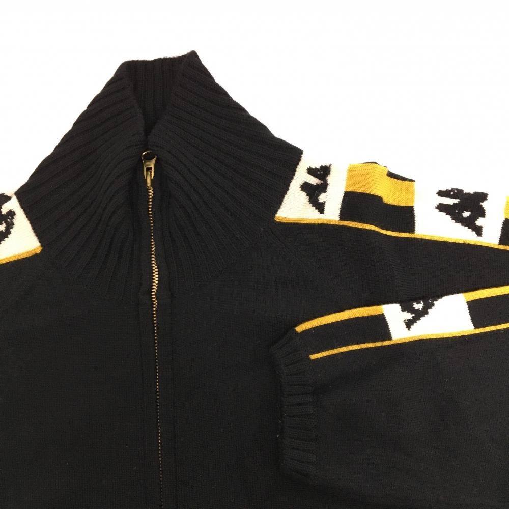 【美品】カッパ ニットジャケット 黒×白×マスタードイエロー系 Gold line 袖ロゴ カシミヤ・ウール混 レディース L ゴルフウェア Kappa