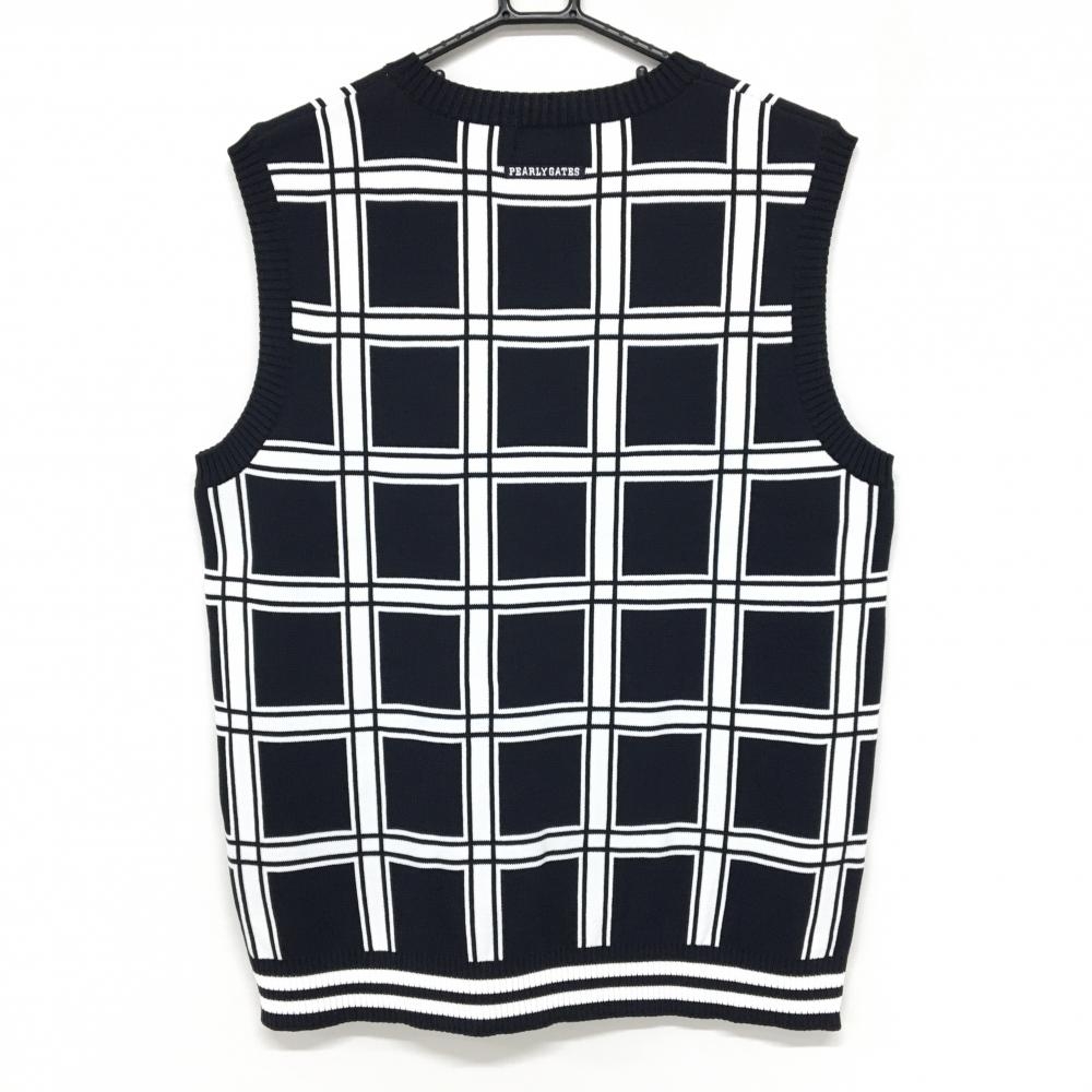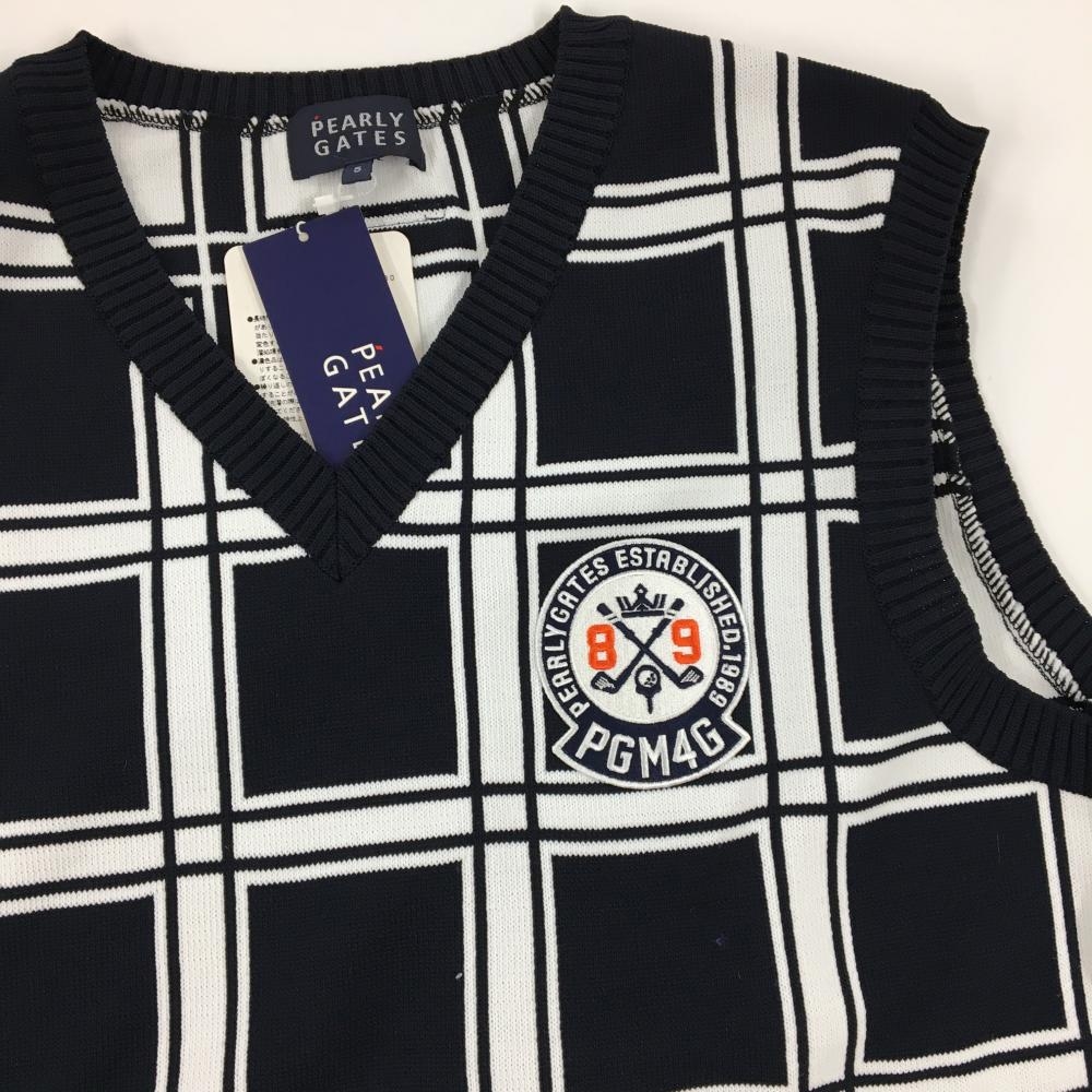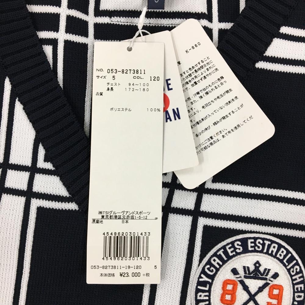 【新品】パーリーゲイツ ニットベスト ネイビー×白 Vネック 格子 メンズ 5(L) ゴルフウェア PEARLY GATES