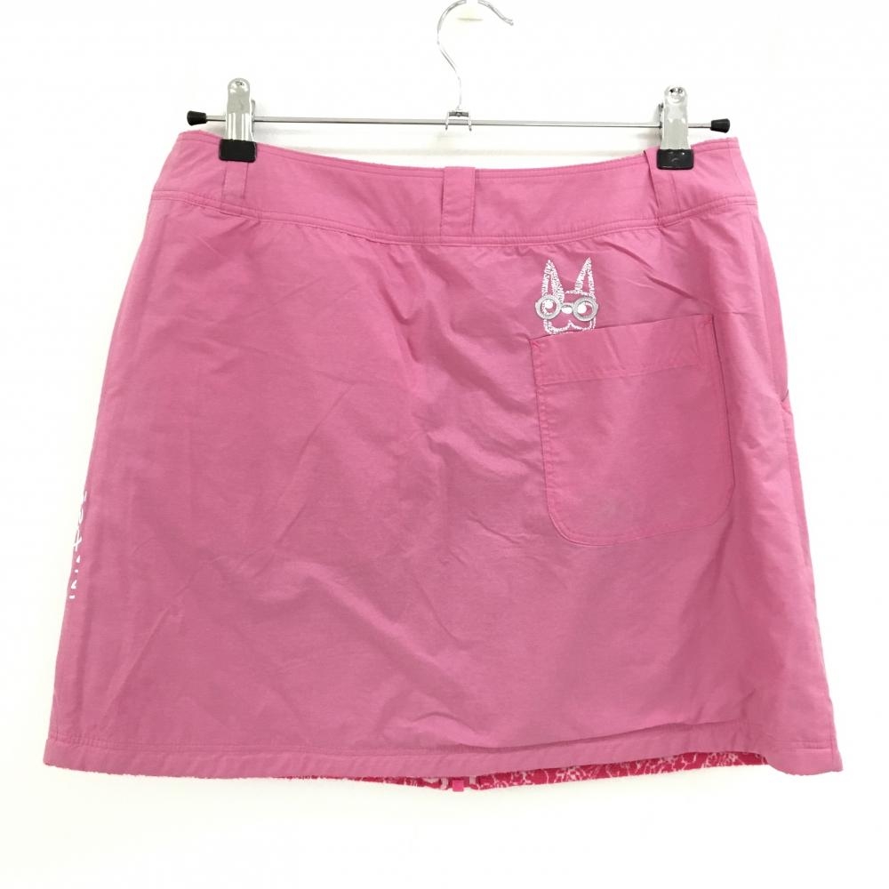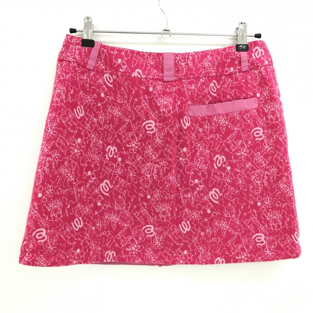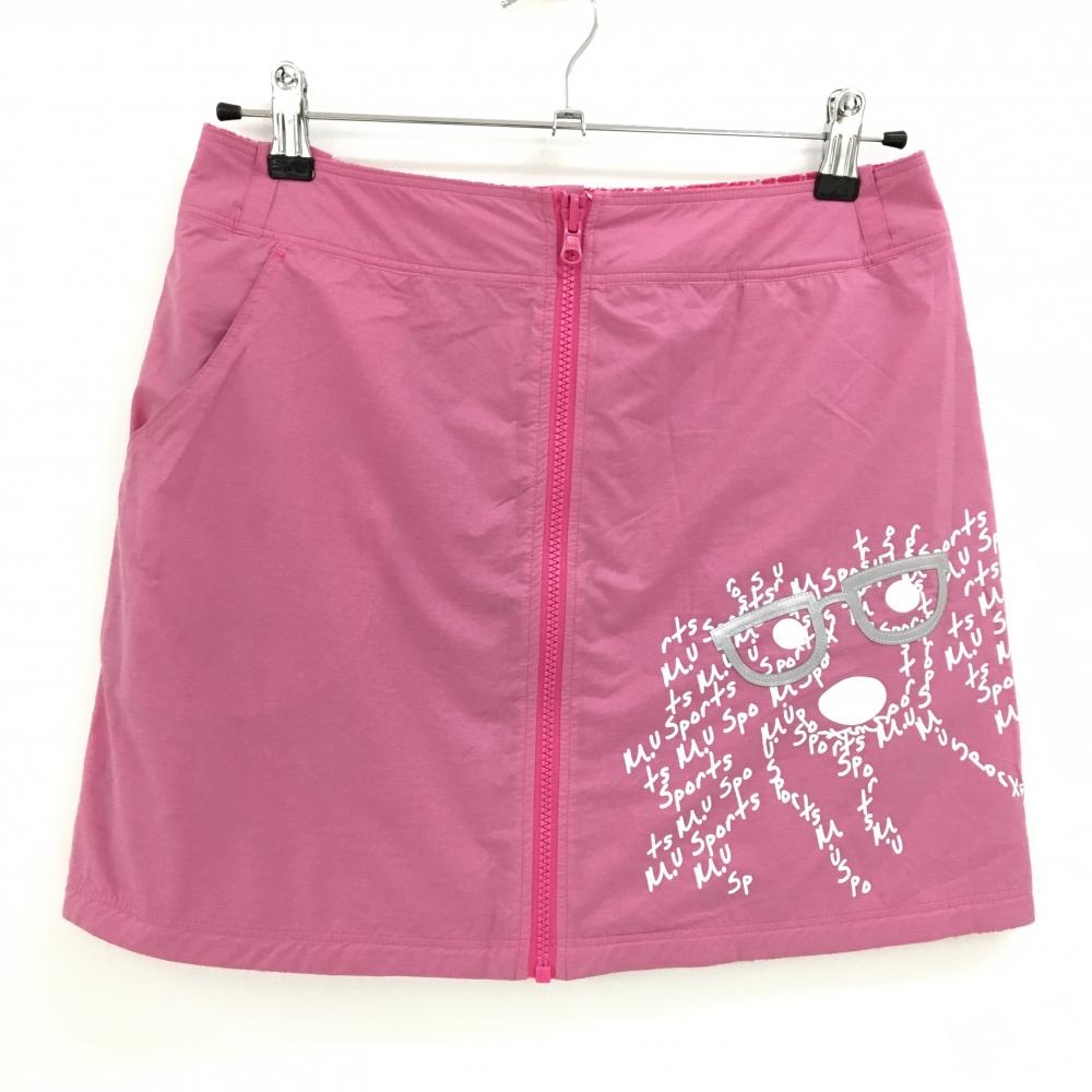 【美品】MUスポーツ リバーシブルスカート ピンク×白 総柄 表起毛 裏シンプル フロントジップ レディース 40(M) ゴルフウェア M・U SPORTS