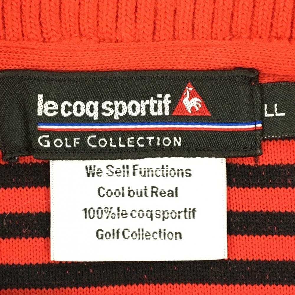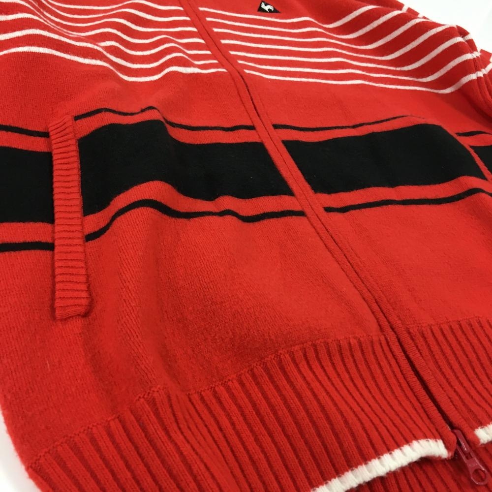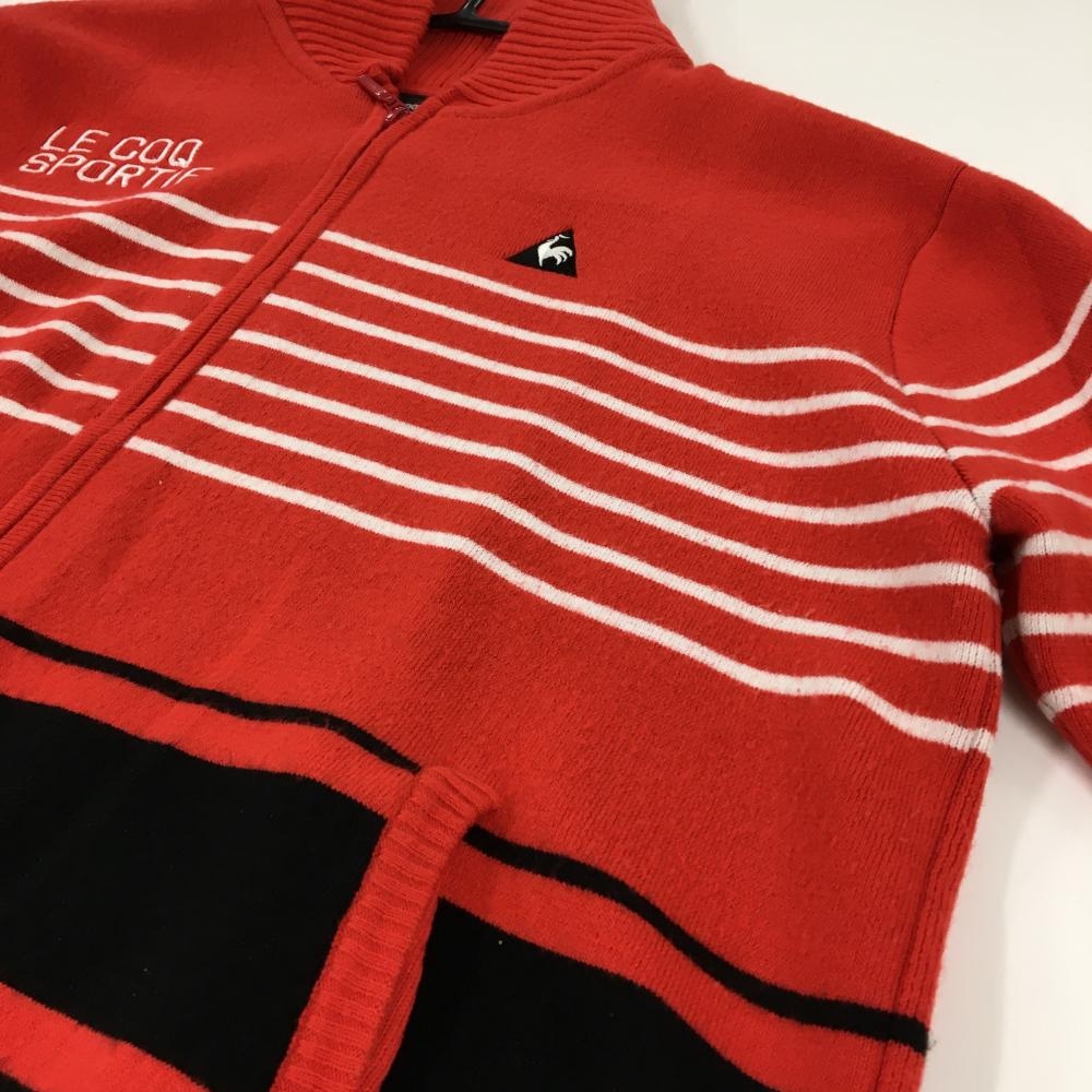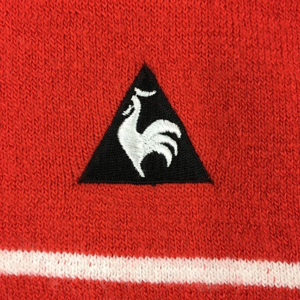 ルコックゴルフ ニットジャケット レッド×白 一部ボーダー ロゴ刺しゅう ウール混 メンズ LL ゴルフウェア le coq sportif