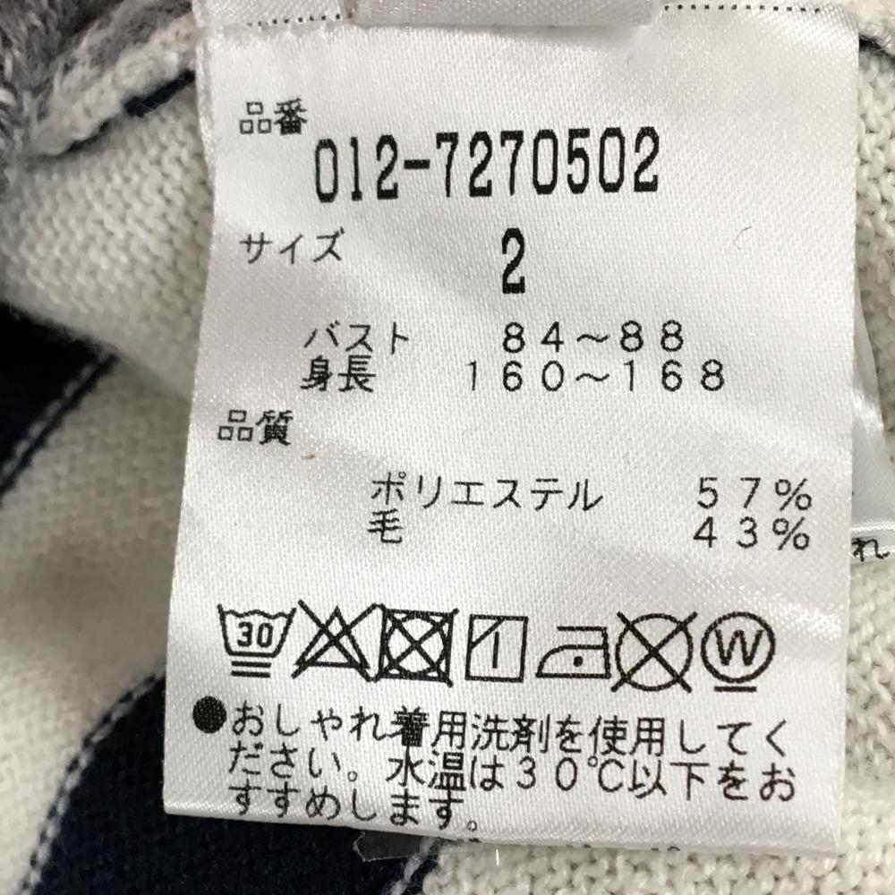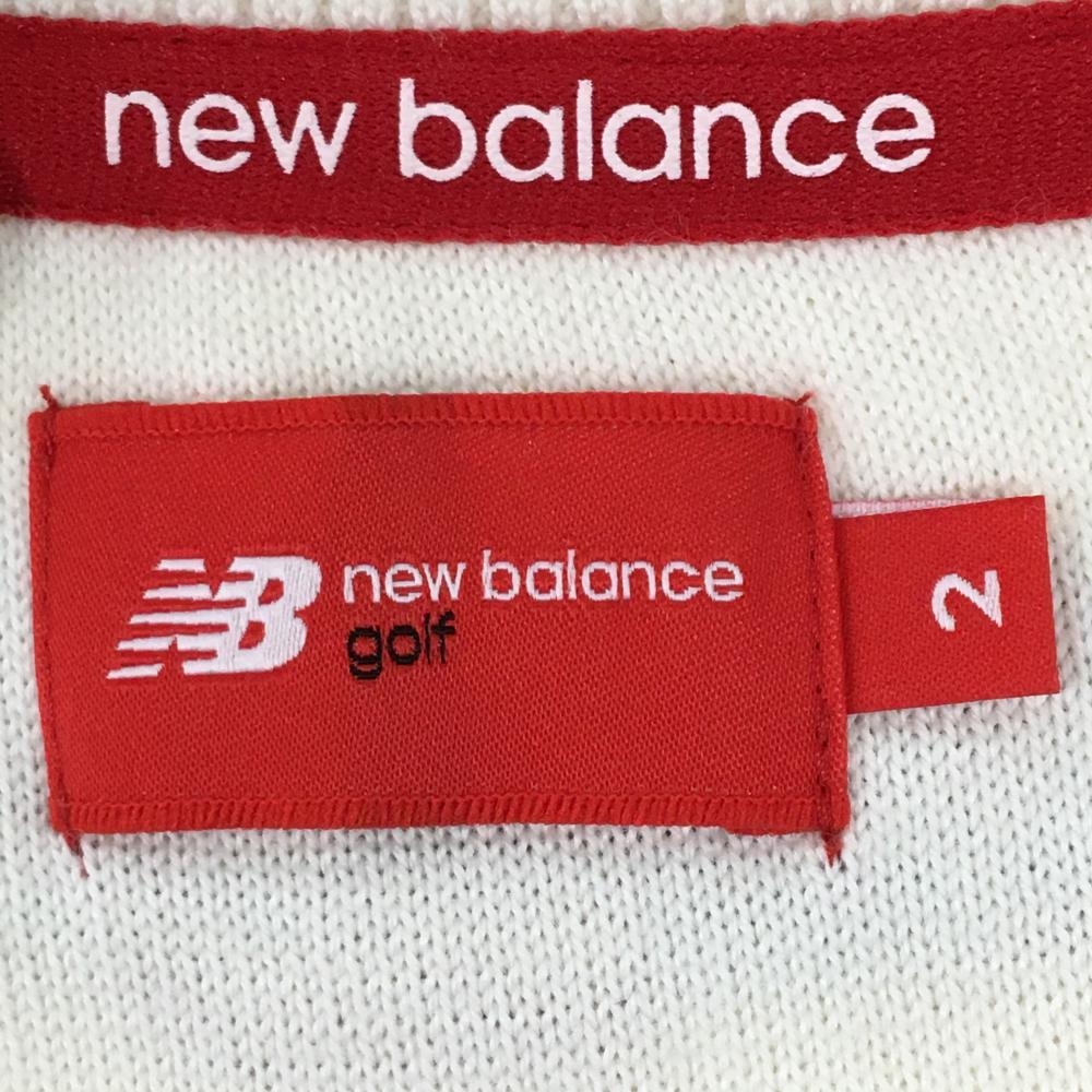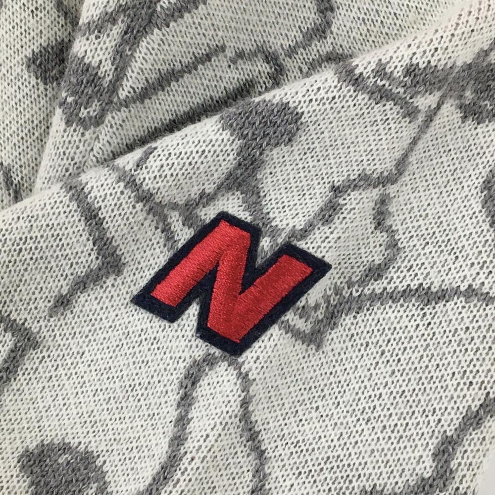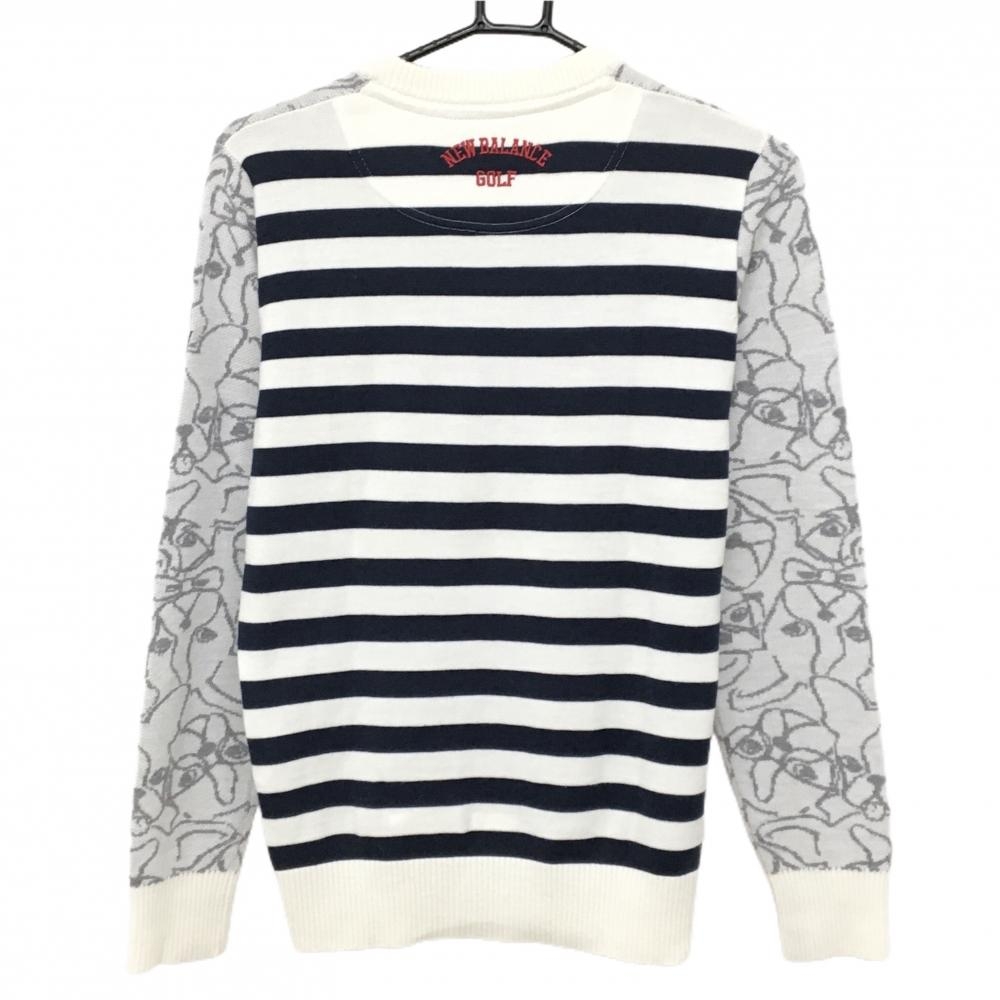 【超美品】ニューバランスゴルフ セーター 白×グレー 前面フレンチブル総柄 背面ボーダー レディース 2(L) ゴルフウェア New Balance