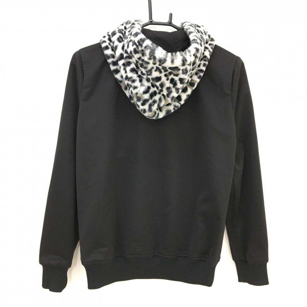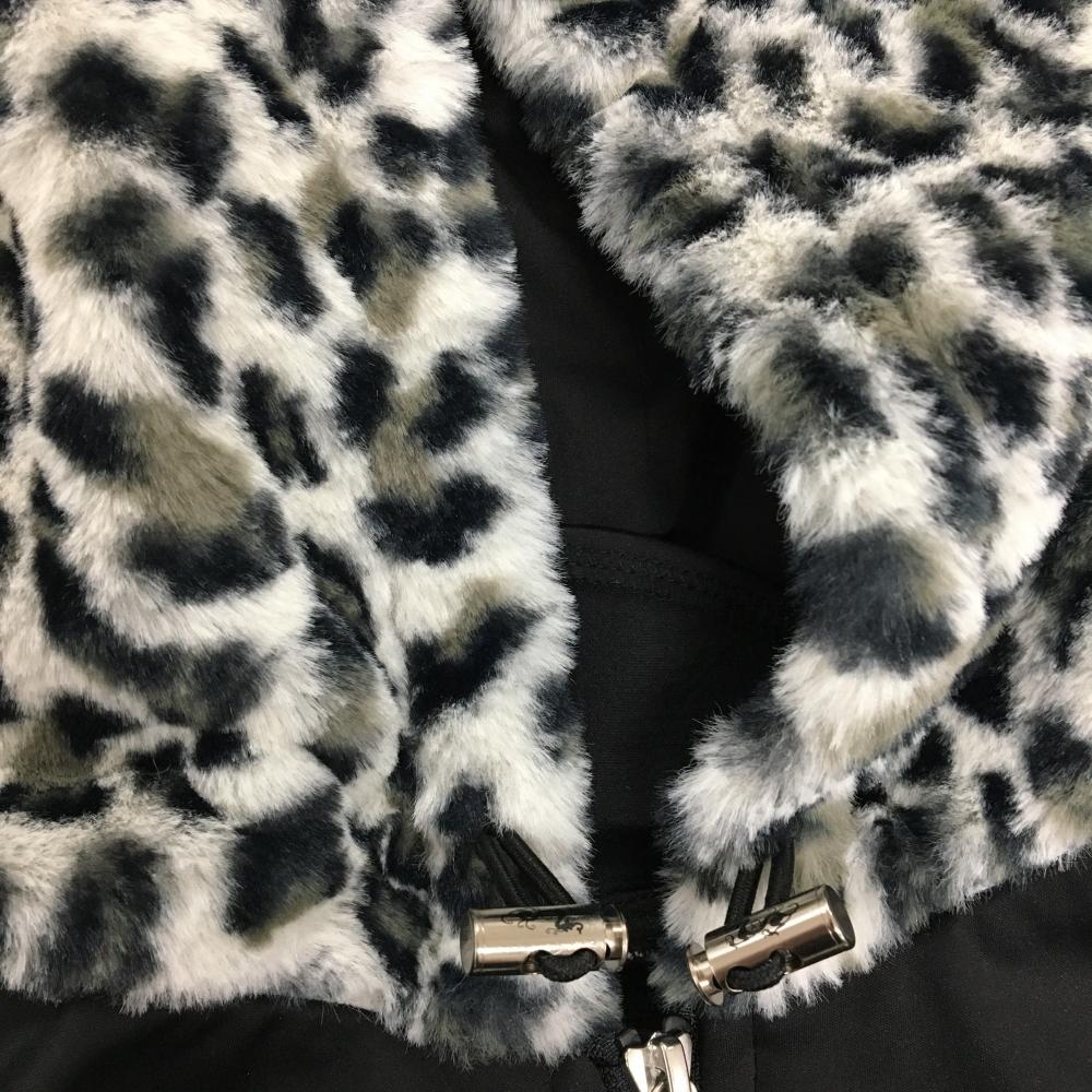 【超美品】ダンスウィズドラゴン ジップパーカー 黒×グレー フードレオパード柄・ファー レディース 2(M) ゴルフウェア Dance With Dragon