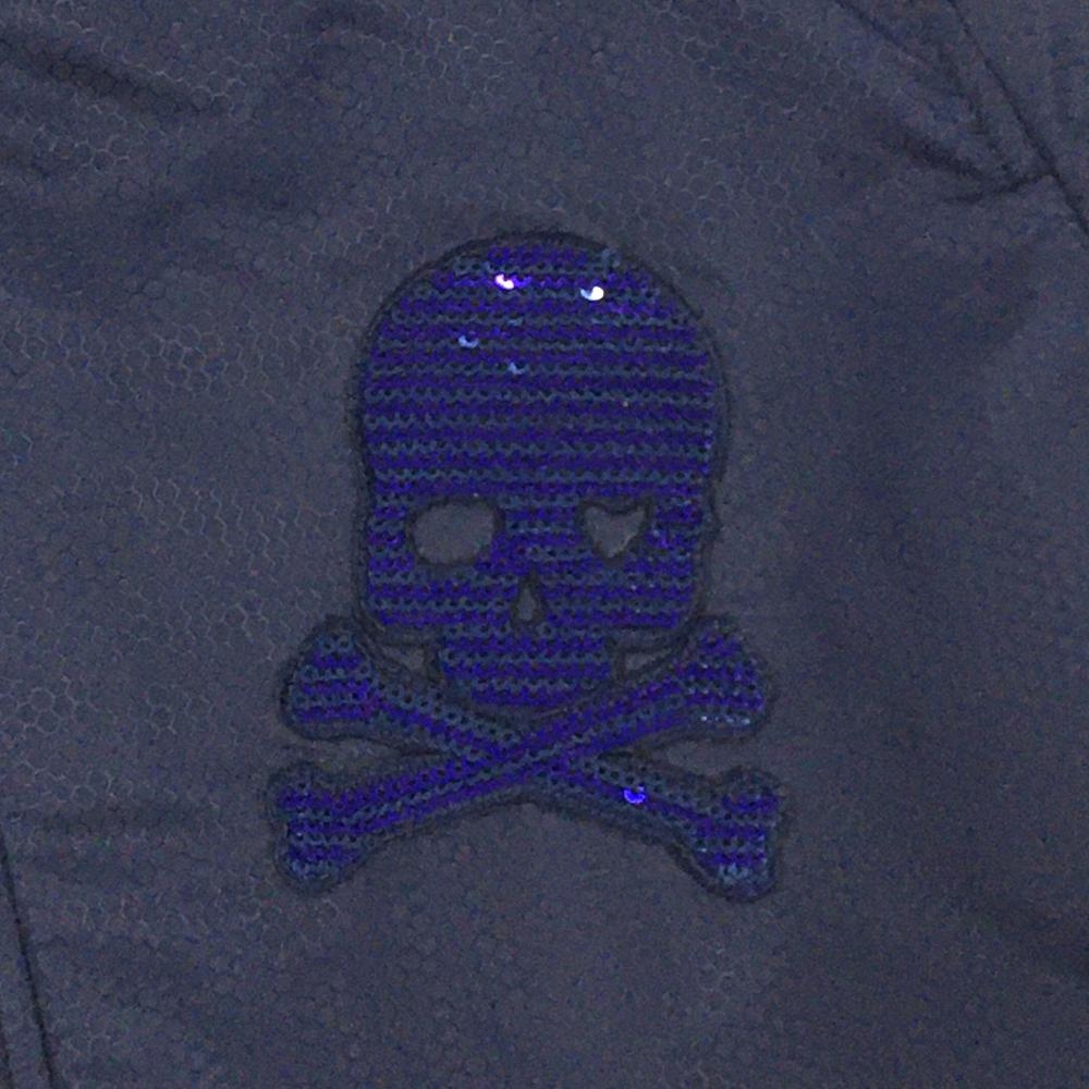【超美品】ダンスウィズドラゴン 中綿ジャケット ネイビー スパンコールスカル レディース 2(M) ゴルフウェア Dance With Dragon