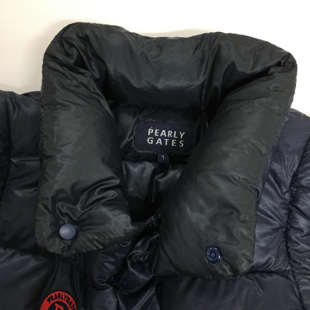 【美品】パーリーゲイツ 2WAYナイロンダウンジャケット ネイビー×レッド 軽量 袖着脱可 レディース 1(M) ゴルフウェア PEARLY GATES