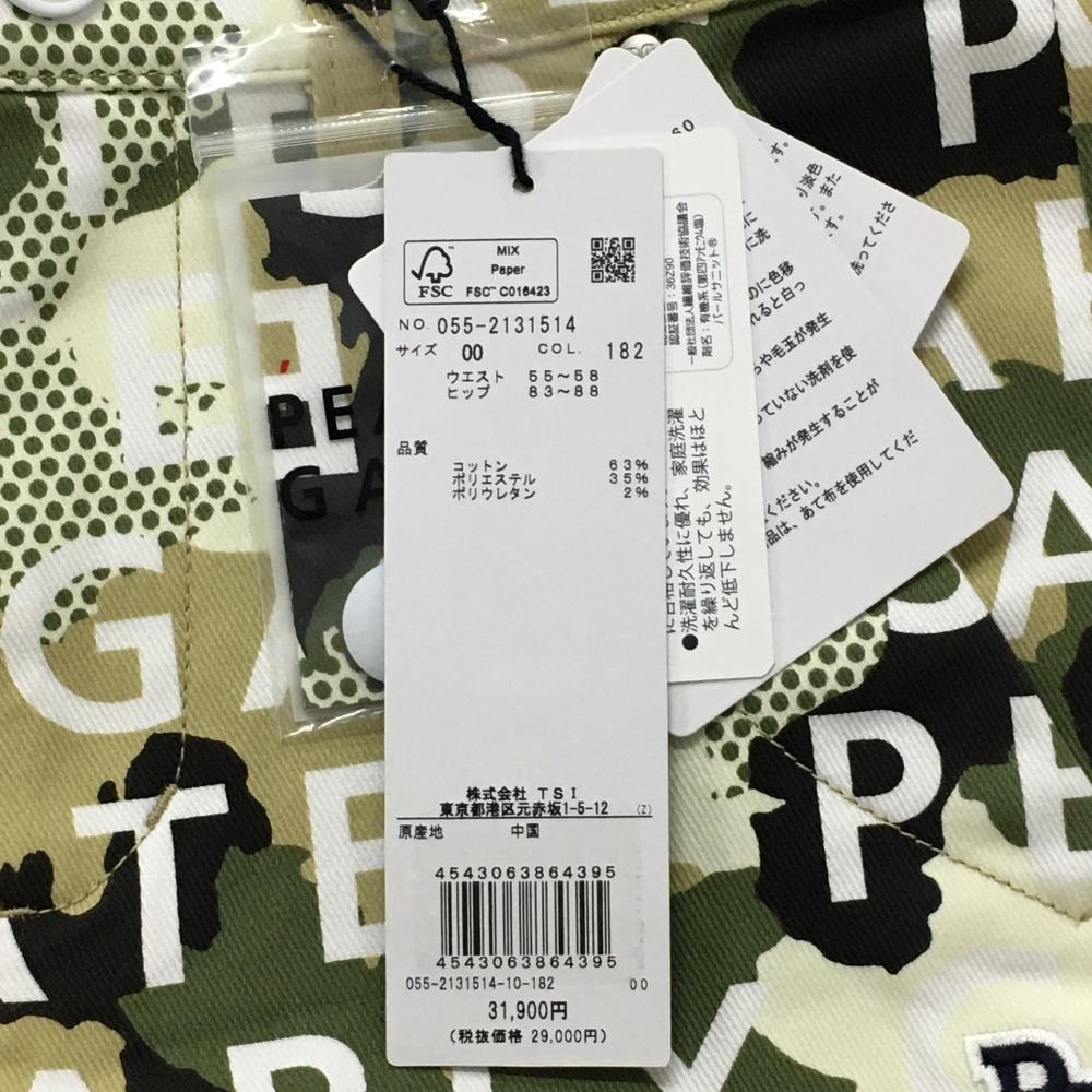 【新品】パーリーゲイツ パンツ カーキ×白 ロゴ総柄 カモフラ調 迷彩 ロゴ刺しゅう レディース 00(XS) ゴルフウェア PEARLY GATES