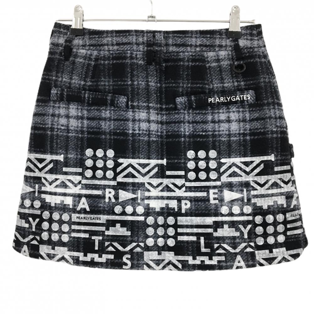 【新品】パーリーゲイツ スカート ダークネイビー×白 チェック 表起毛 下部プリント レディース 0(S) ゴルフウェア PEARLY GATES