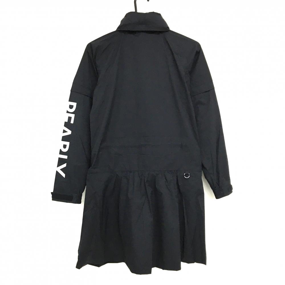 【新品】パーリーゲイツ 2WAYレインワンピース 黒×白 総柄地模様 フード収納可 袖着脱可 レディース 0(S) ゴルフウェア PEARLY GATES