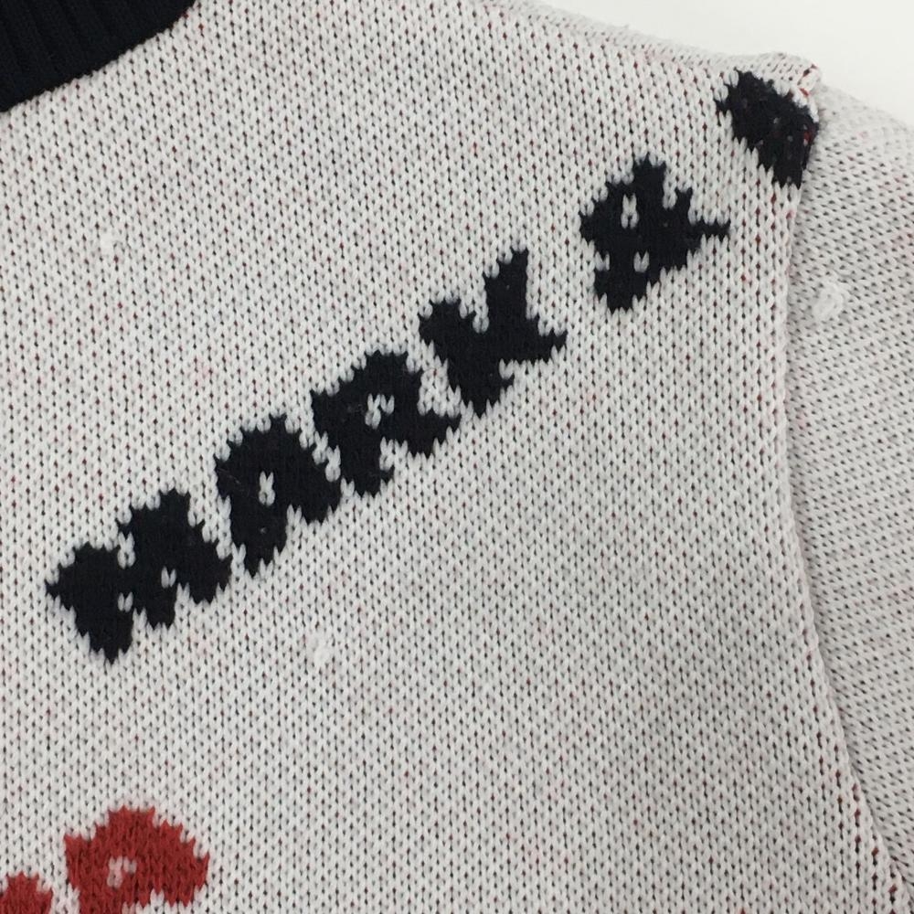 マークアンドロナ セーター 白×レッド ロゴ総柄 ニット ウール混 裏地付 レディース 36(S) ゴルフウェア MARK&LONA