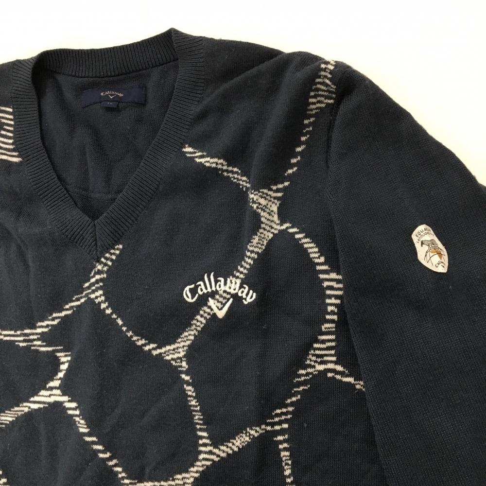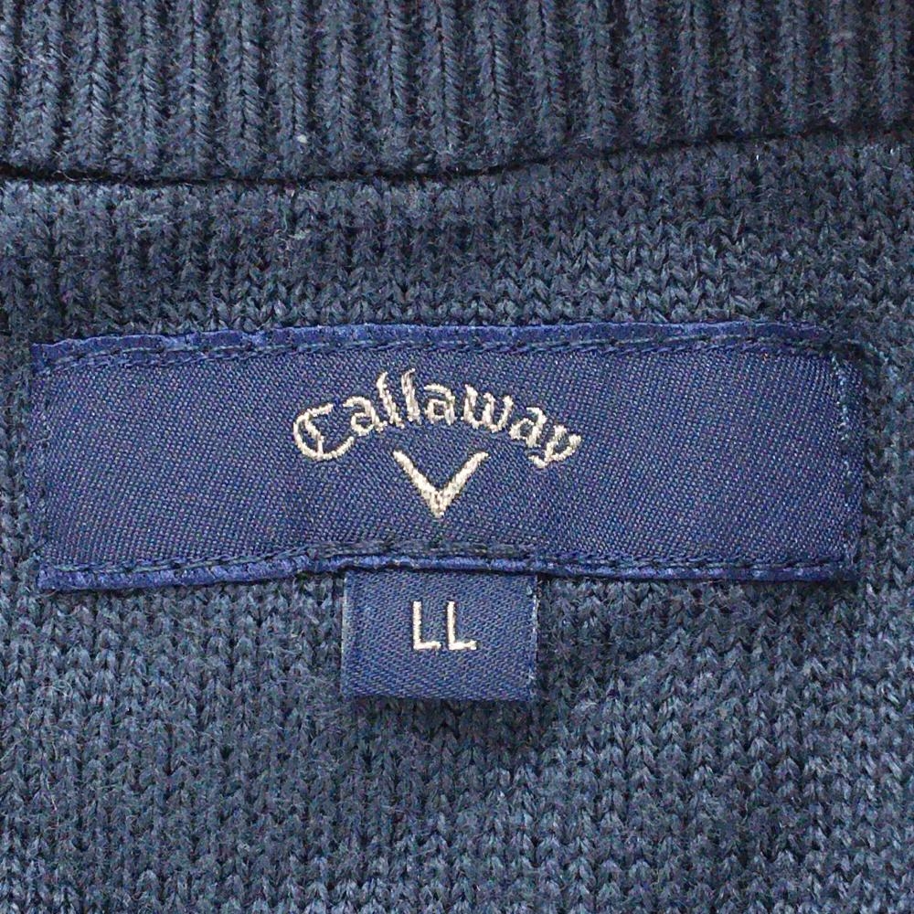 キャロウェイ セーター ネイビー×白 前身頃総柄 Vネック ニット メンズ LL ゴルフウェア Callaway