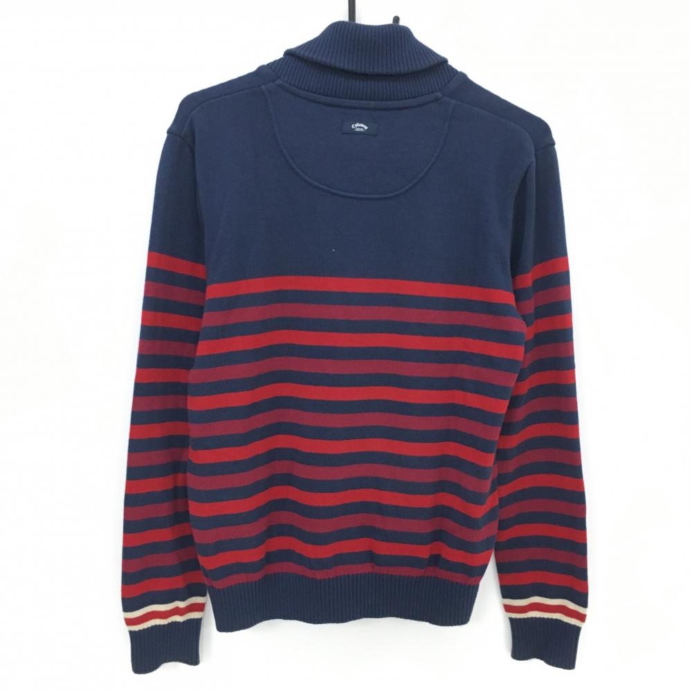 キャロウェイ ニットジャケット ネイビー×レッド ボーダー メンズ M ゴルフウェア Callaway