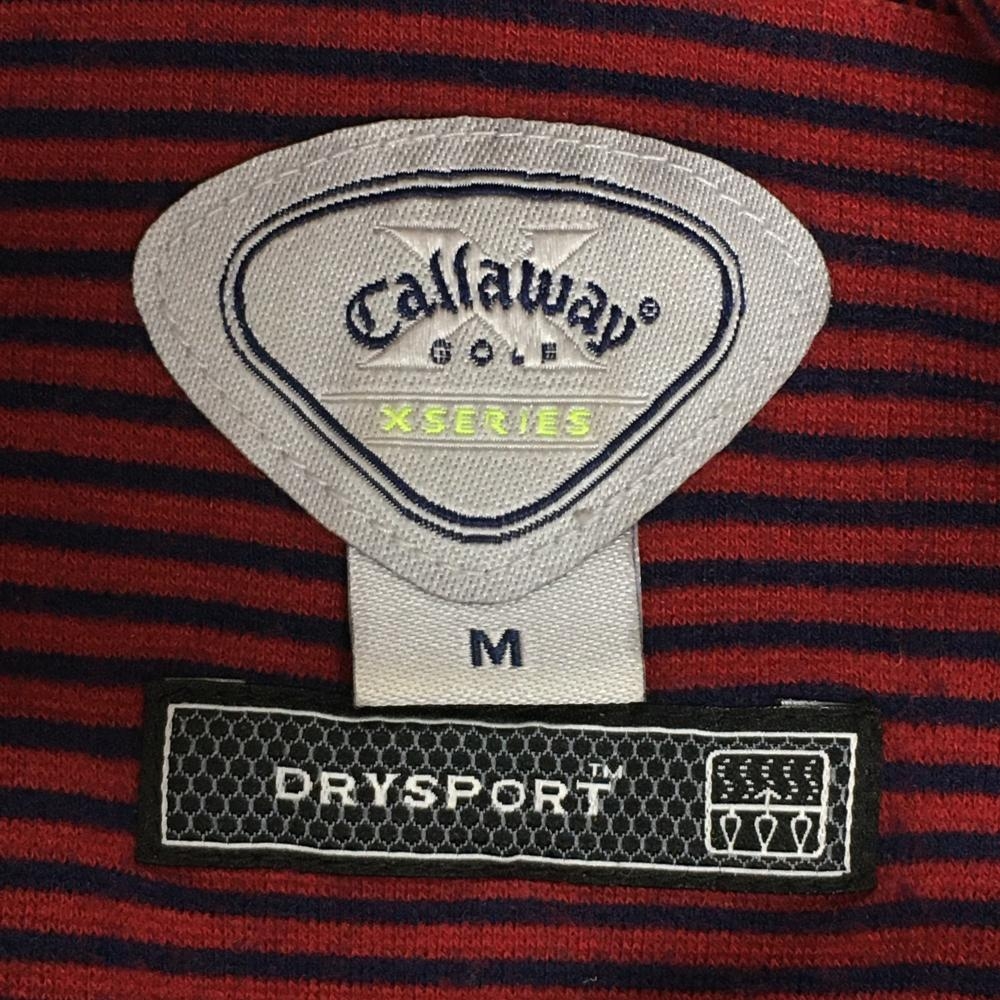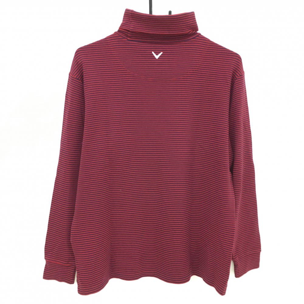 キャロウェイ 長袖タートルネックシャツ レッド×ネイビー ボーダー ロゴ刺しゅう メンズ M ゴルフウェア Callaway