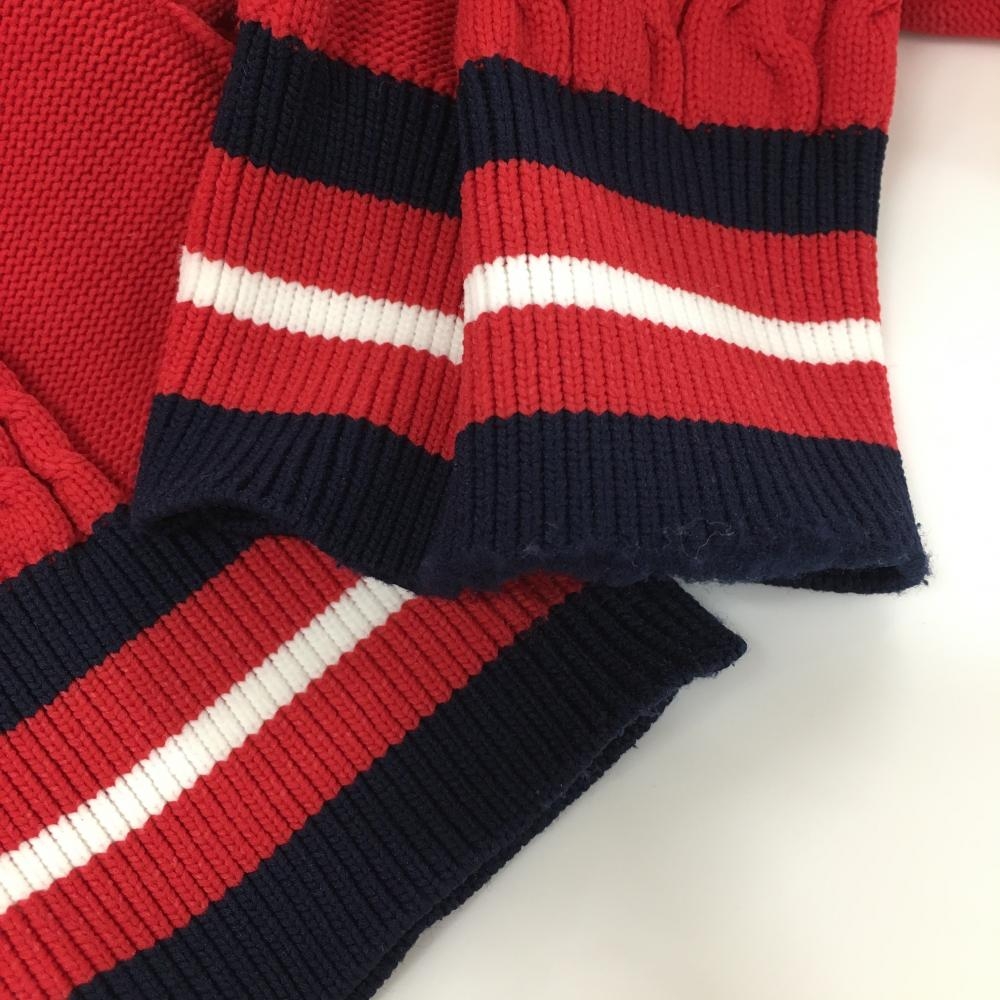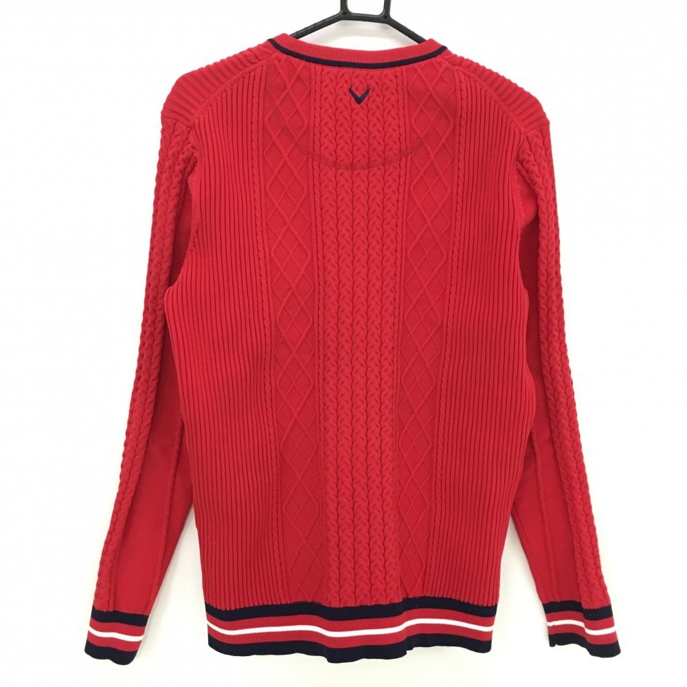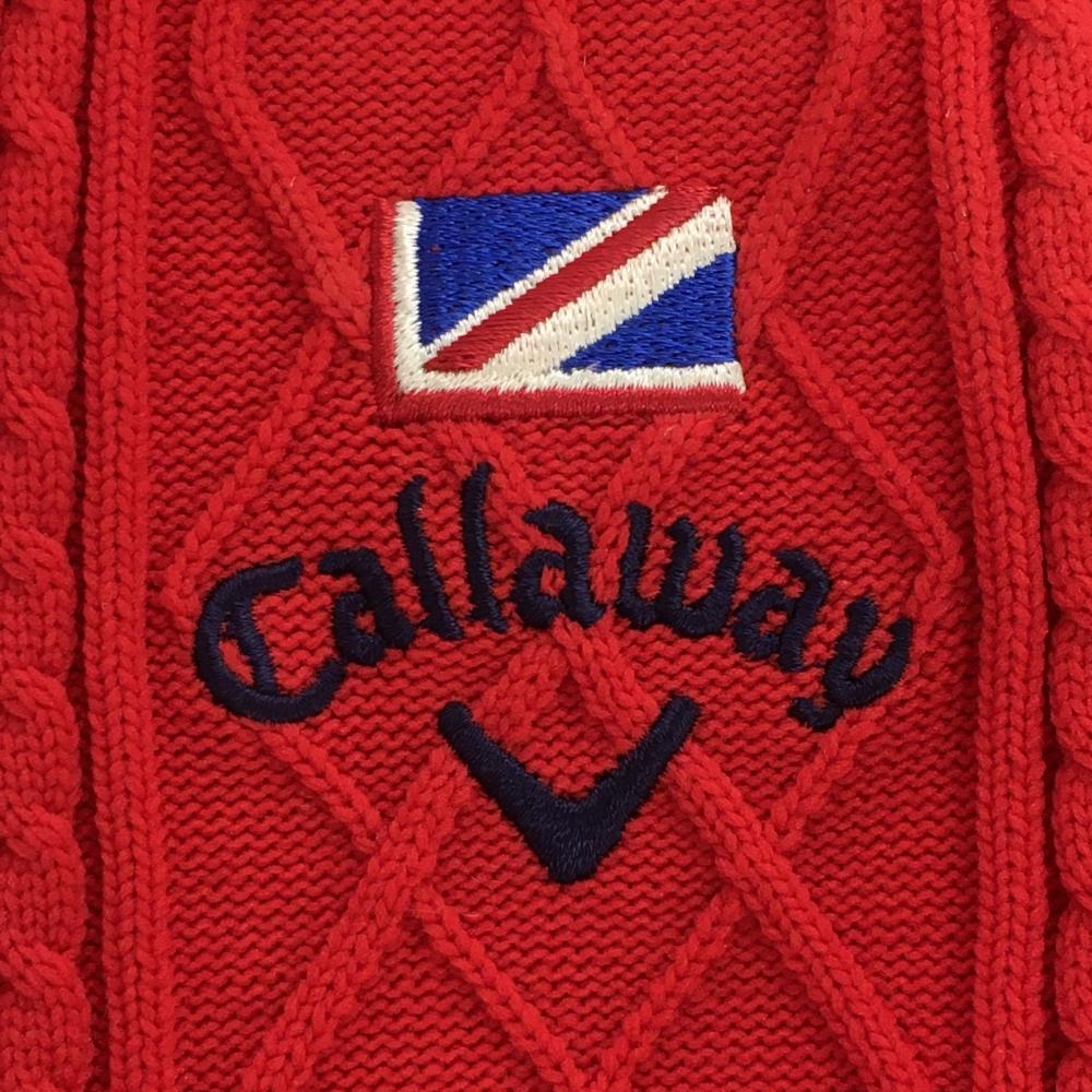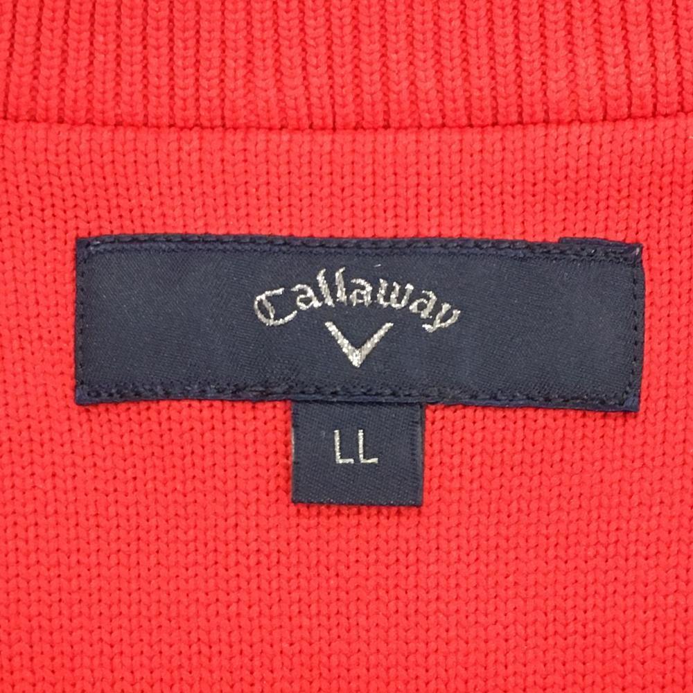 【美品】キャロウェイ セーター レッド×ネイビー ケーブル編み Vネック ニット メンズ LL ゴルフウェア Callaway