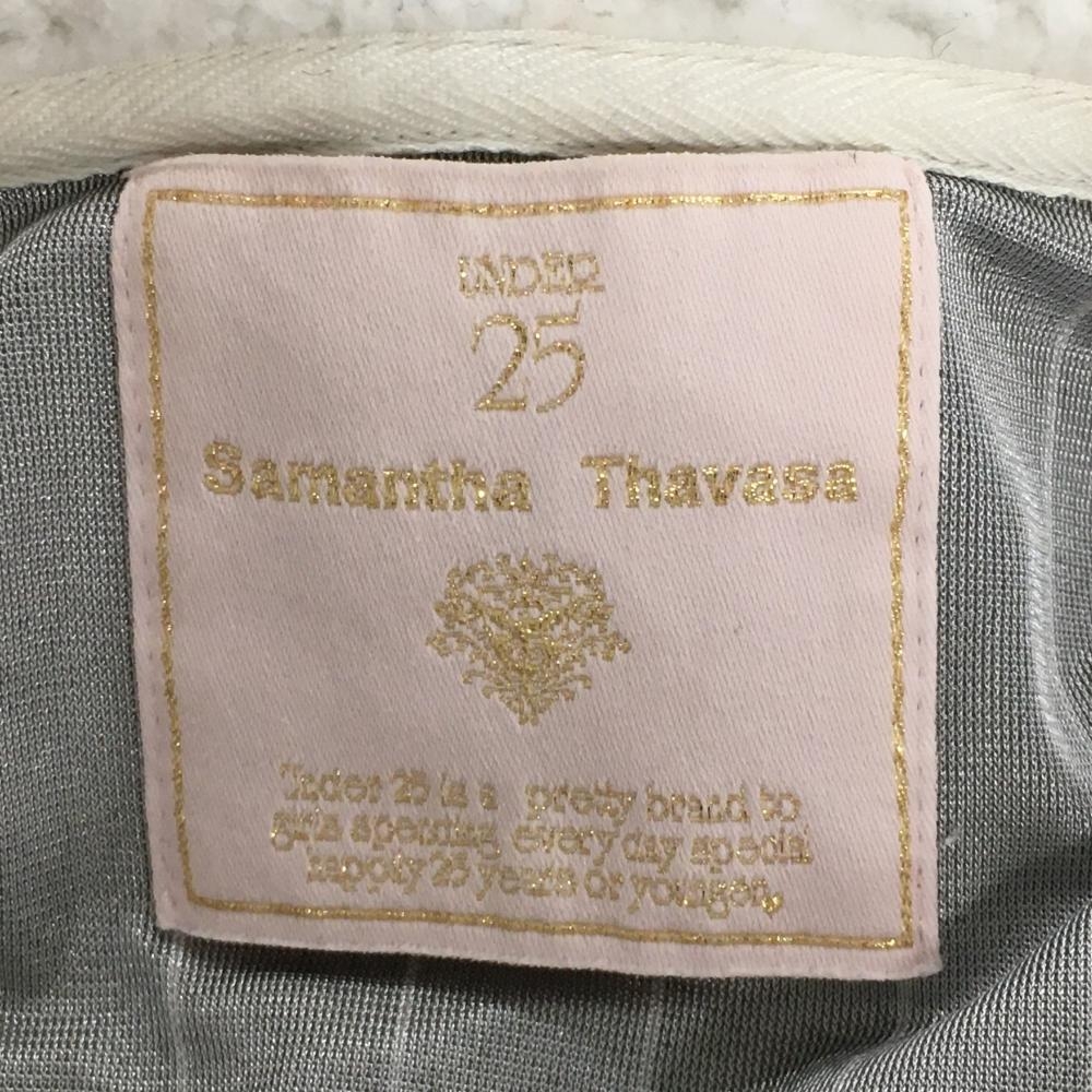 サマンサタバサUNDER25 ニットジップパーカー ライトグレー×白 フード内側ボア レディース M ゴルフウェア Samantha Thavasa