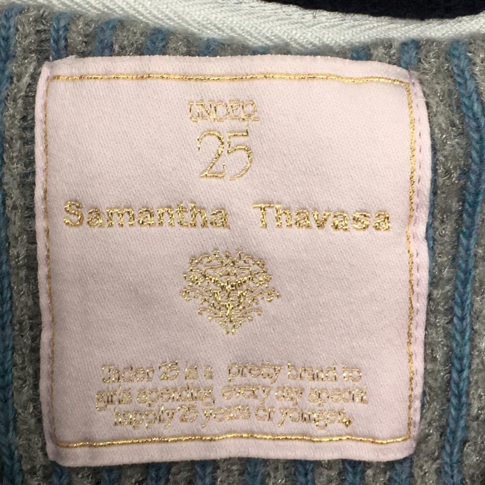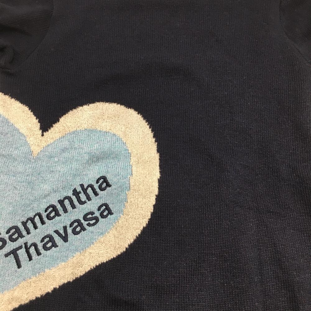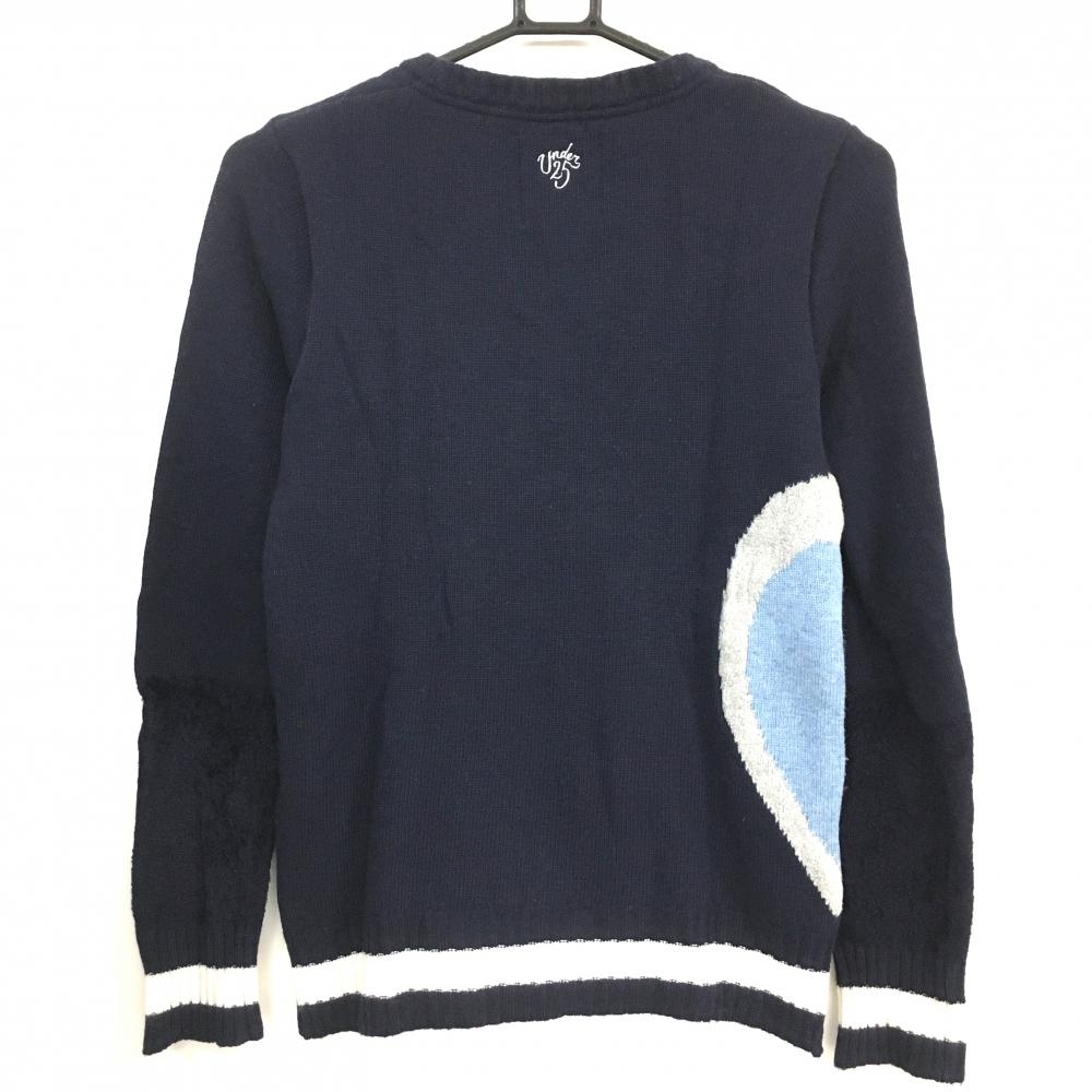 【美品】サマンサタバサUNDER25 セーター ネイビー×白 ハート 袖異素材 ニット レディース M ゴルフウェア Samantha Thavasa