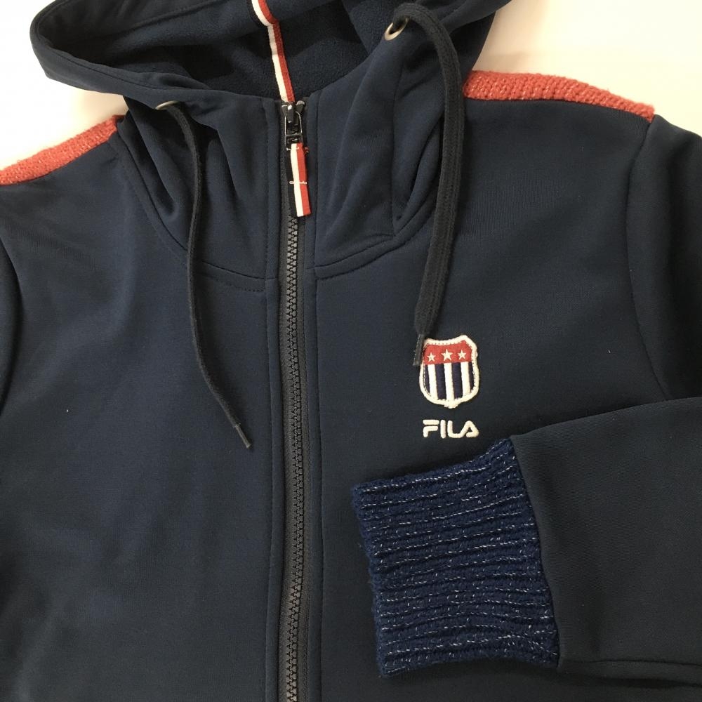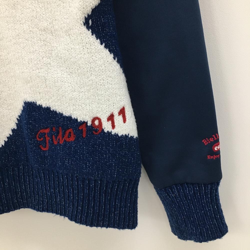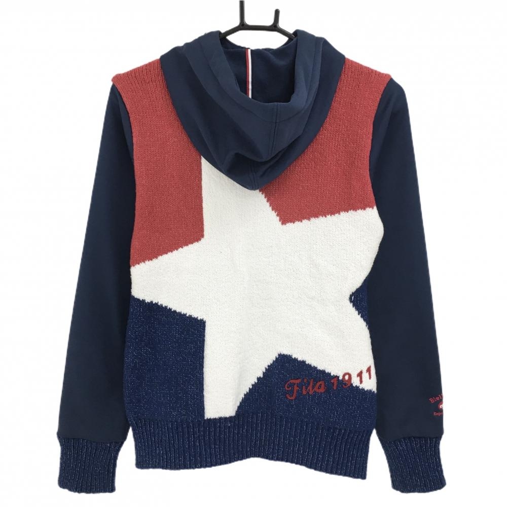 【美品】フィラゴルフ 切替ニットブルゾン ネイビー×レッド 星 スター パーカー レディース M ゴルフウェア FILA GOLF