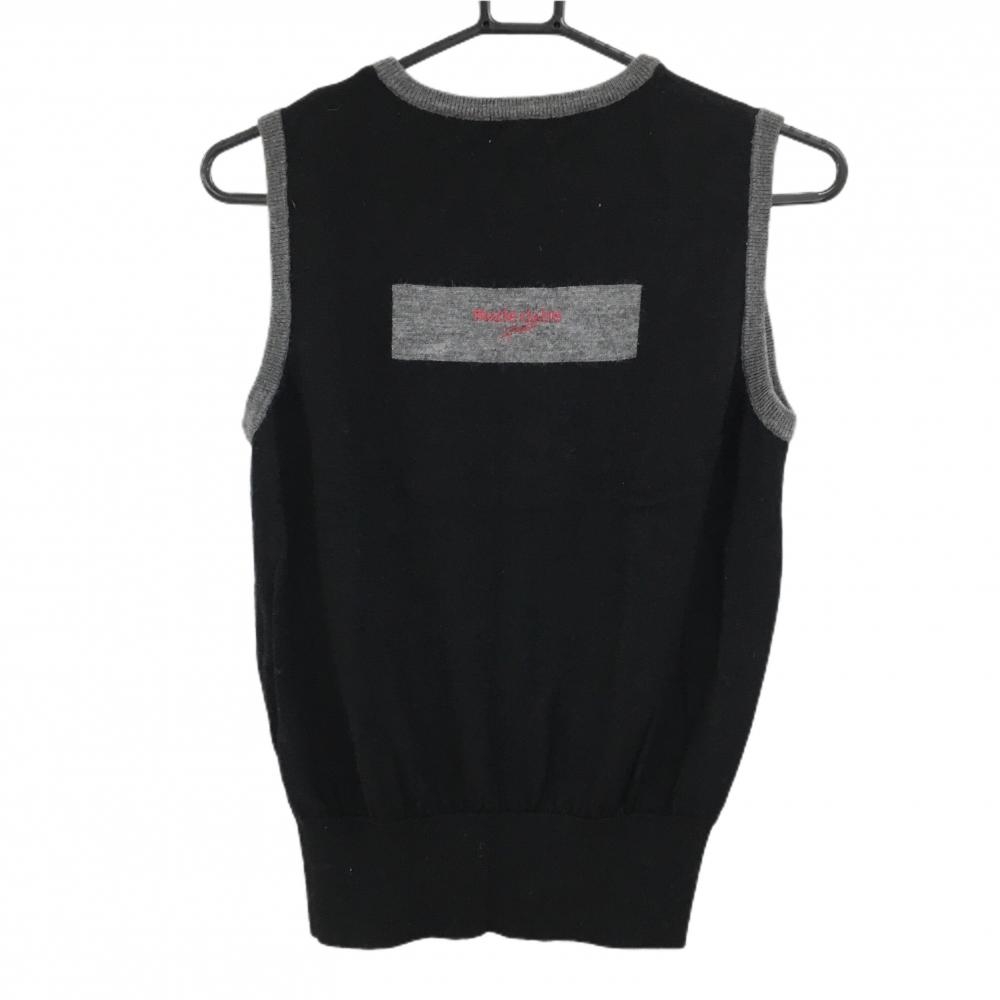 【美品】マリクレールスポール ニットベスト 黒×グレー レッドライン バックロゴ ウール100% レディース M ゴルフウェア marie claire